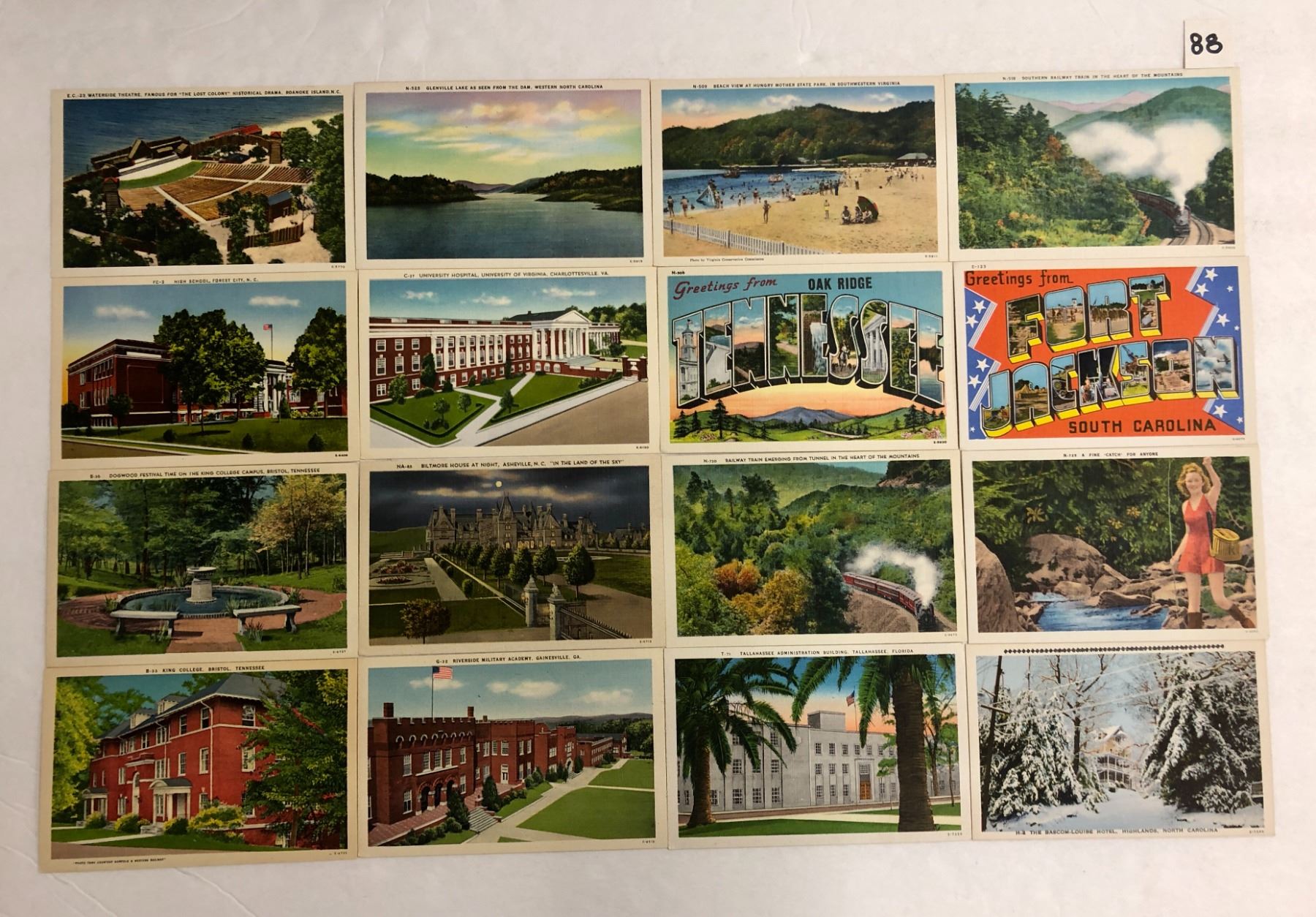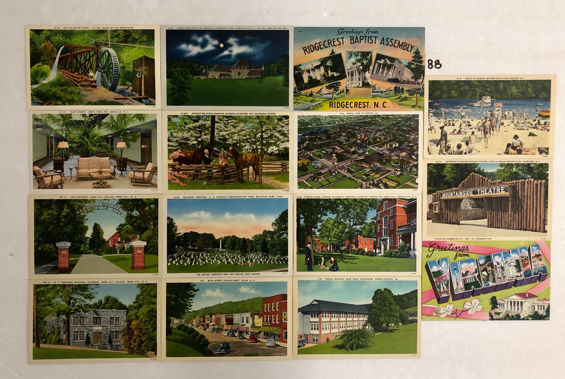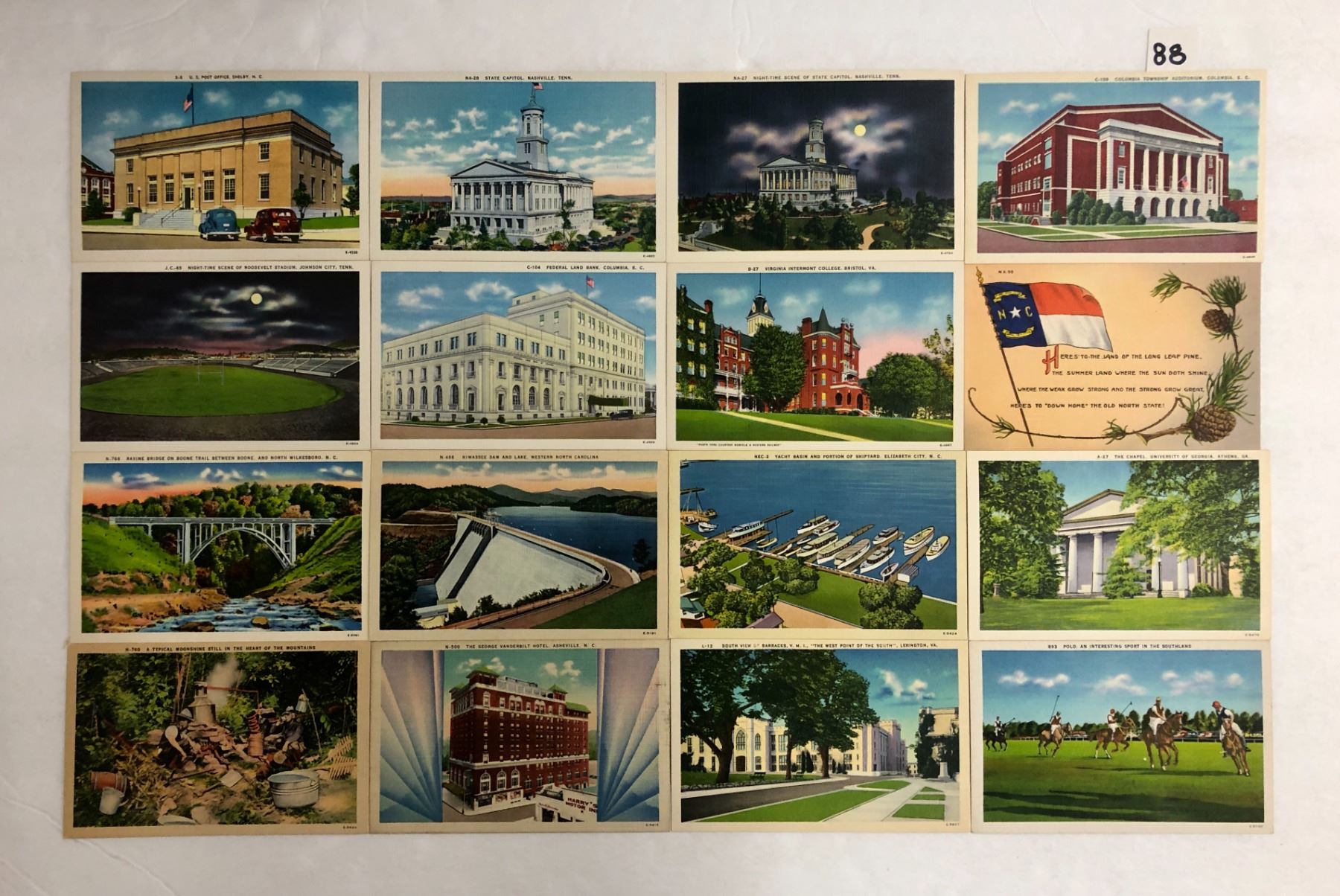 Approx. 400 Ashville Publishing postcards. Linen to standard size chrome. Mostly linen. Mostly southern states. Schools, buildings, scenes, etc.