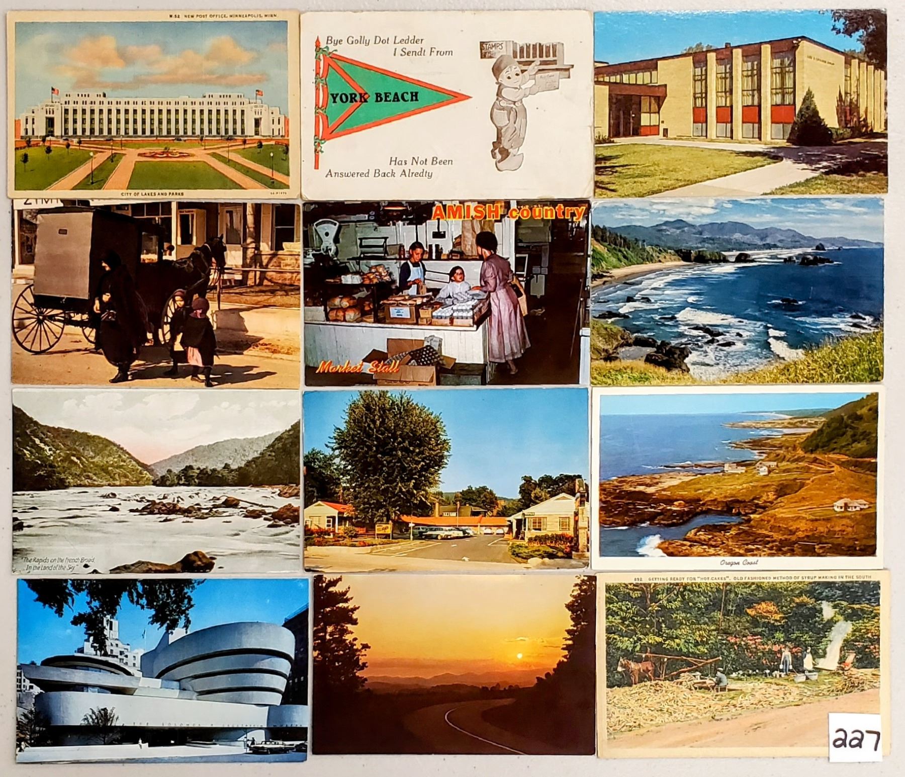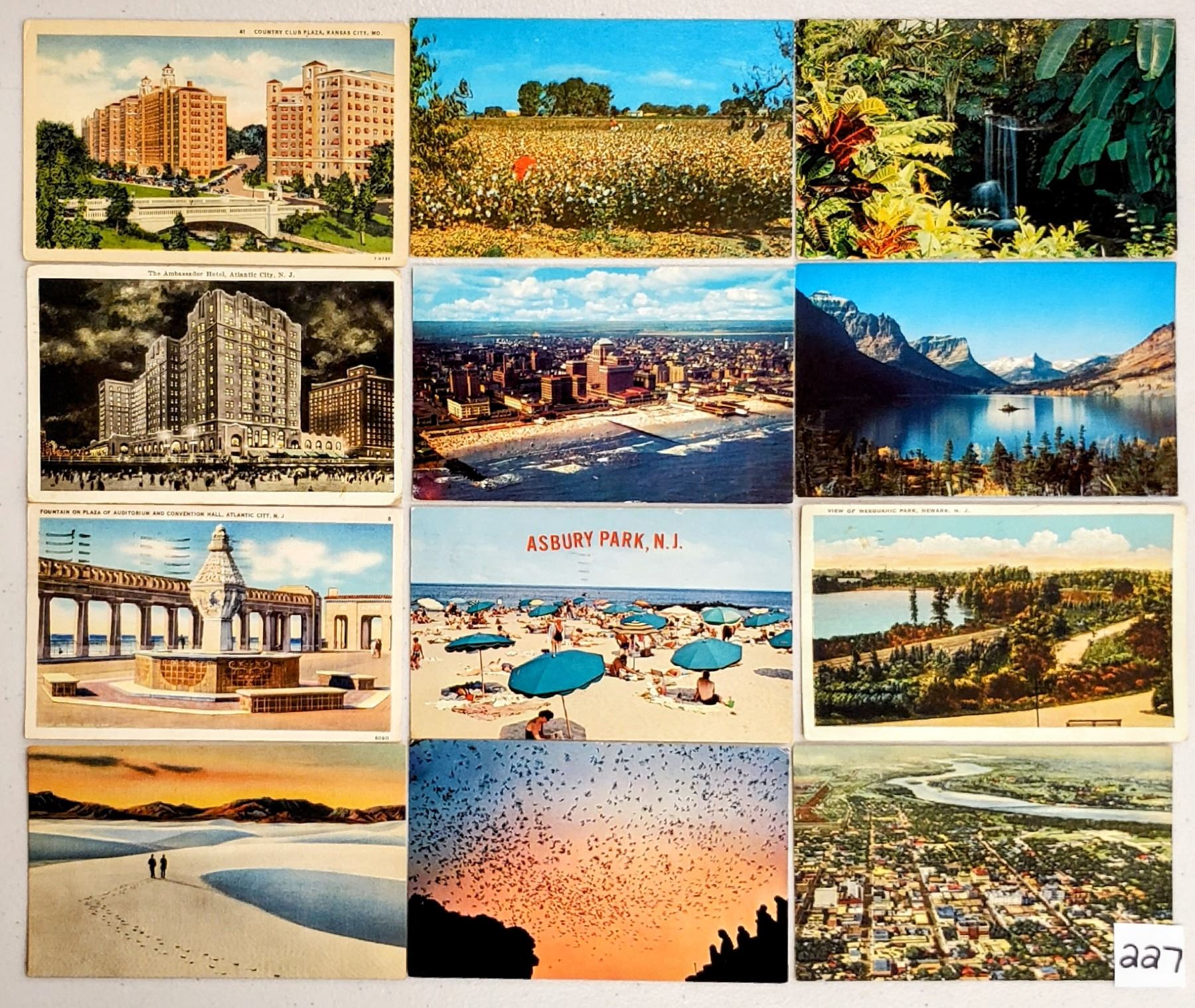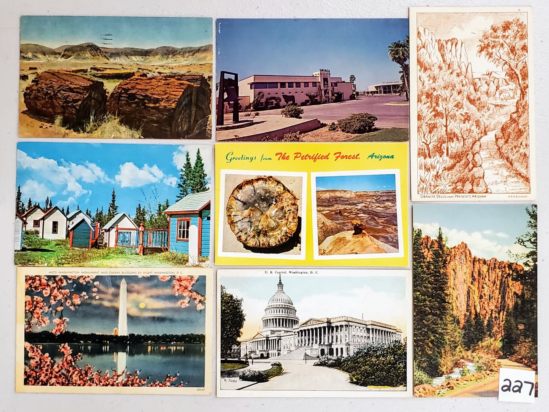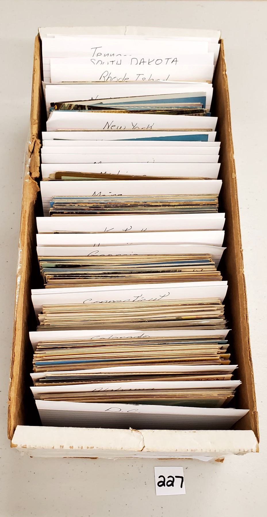 Over 450 US postcards, sorted by state. Early to standard size chrome.