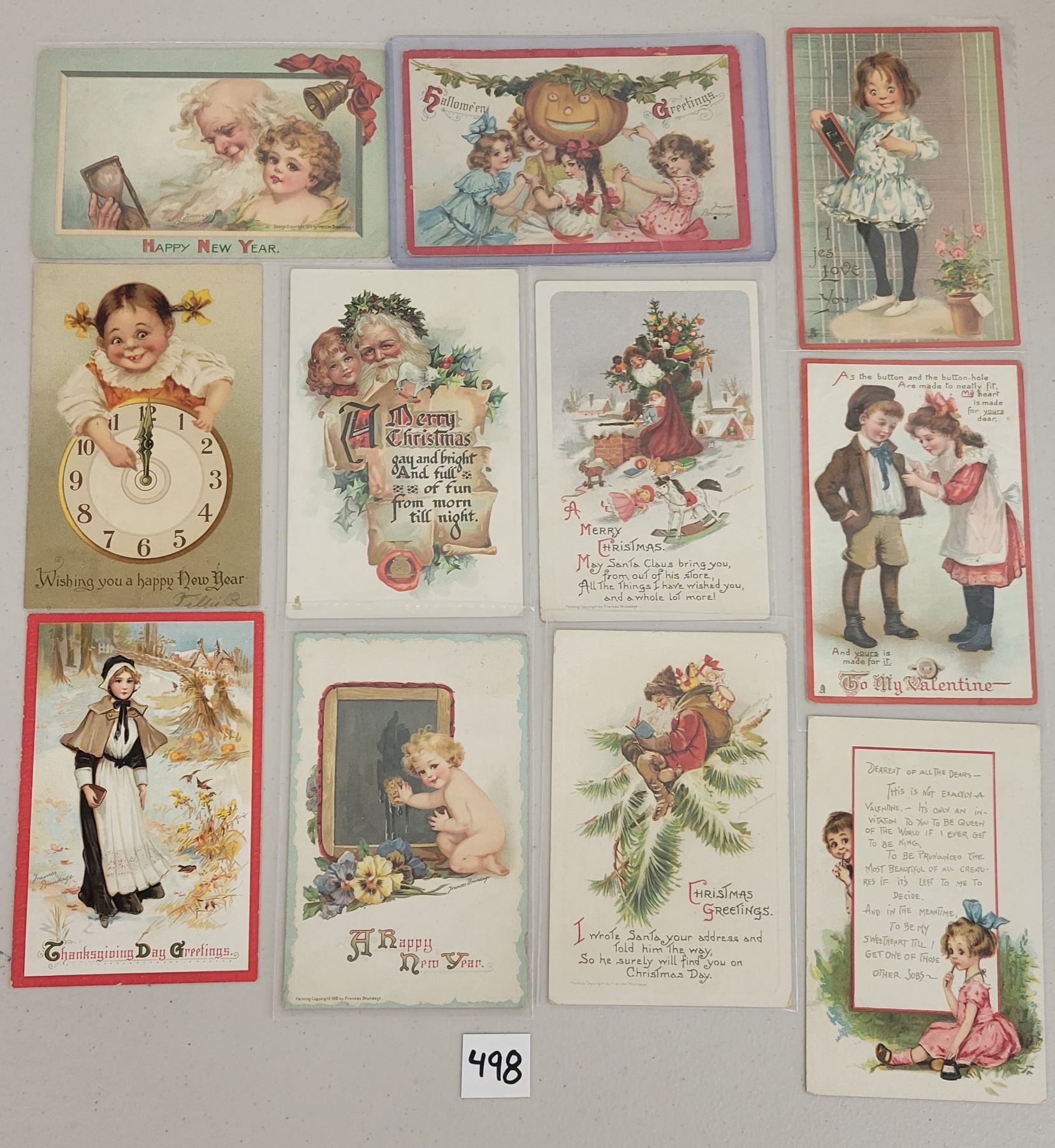 Group of 19 Brundage. 1 card is a Halloween and some Santa.