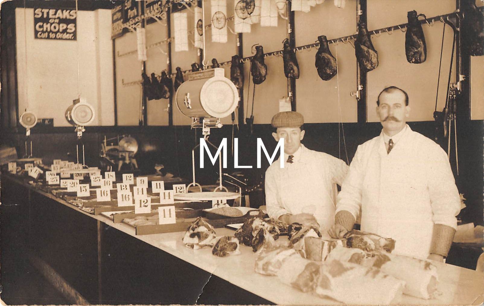 Butcher Shop Interior Postmarked Hornell, New York Real Photo Postcard