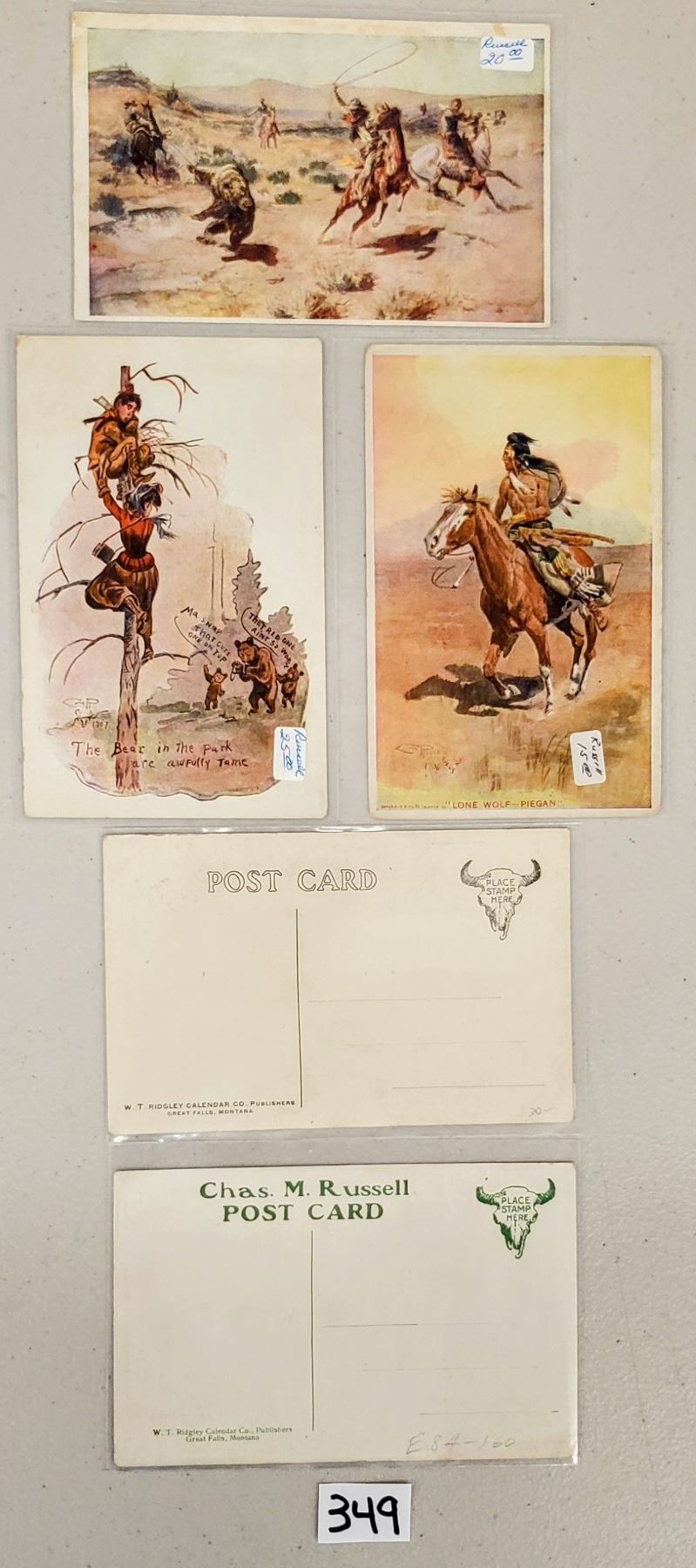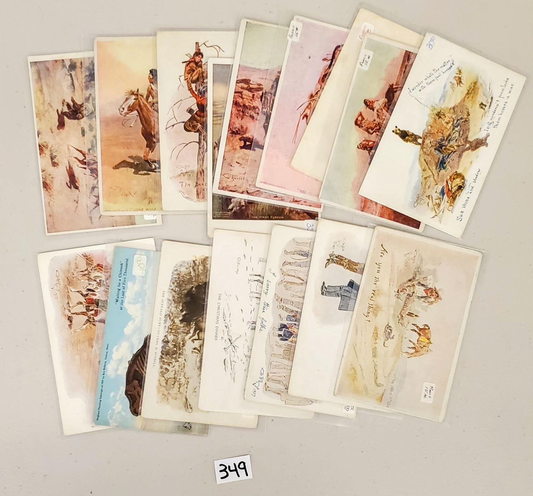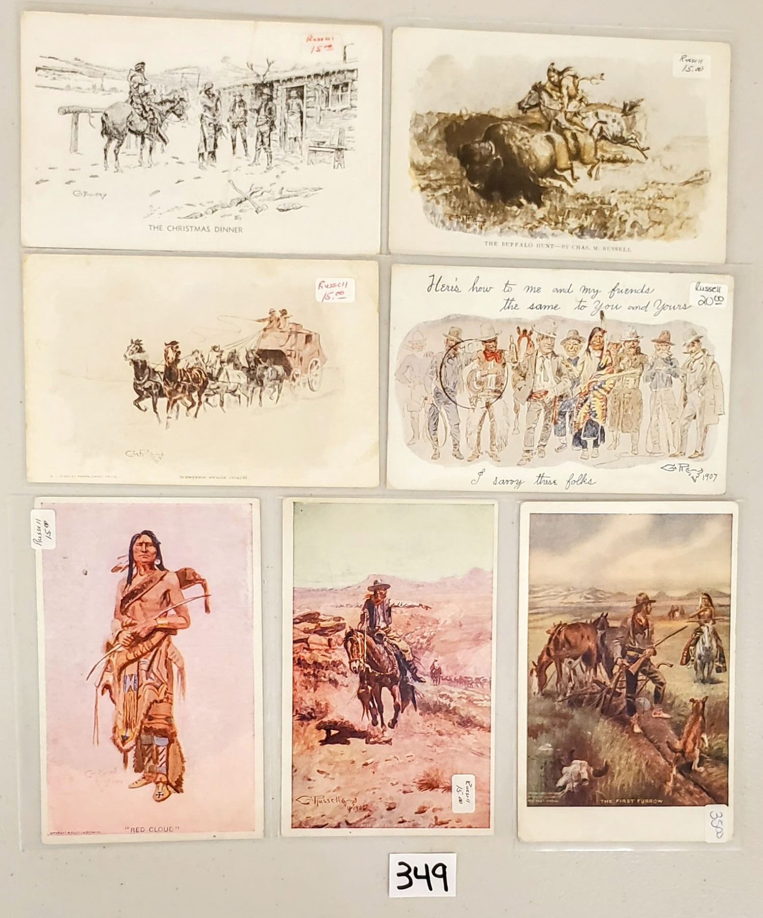 16 C. Russell western comic postcards.