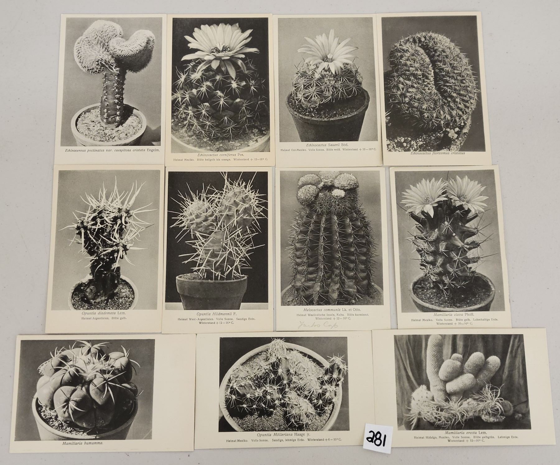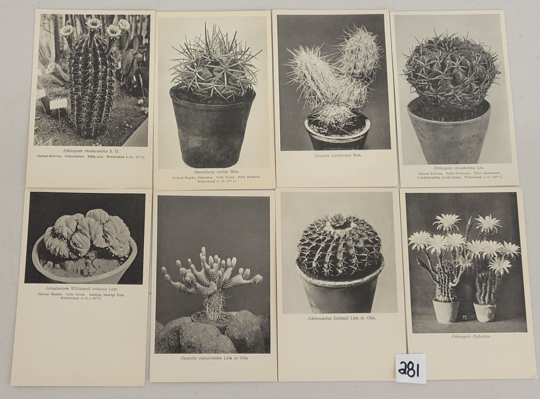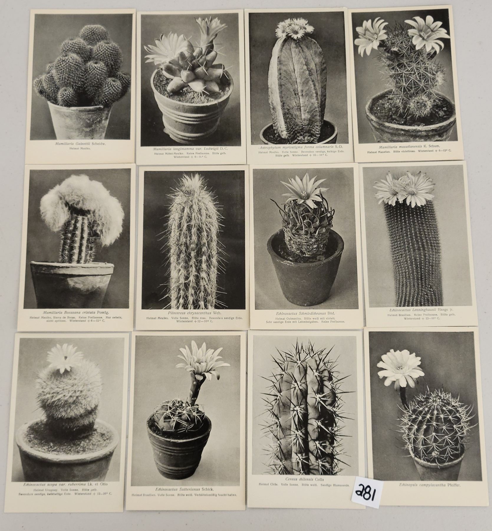 Approx. 235 black & white cactus species postcards. Vintage.