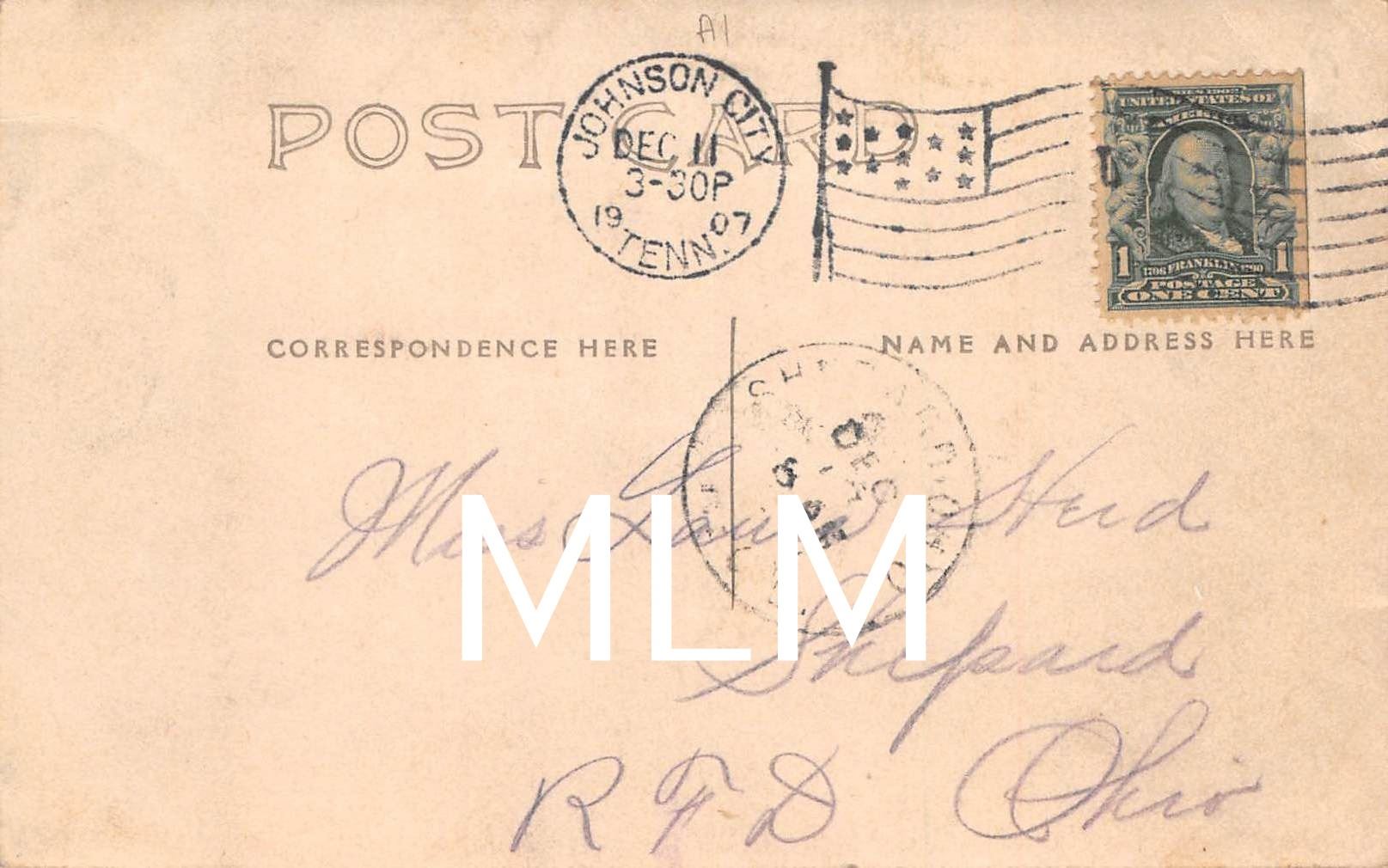 Some edge wear and faint creases lower corners. Postal used 1907.