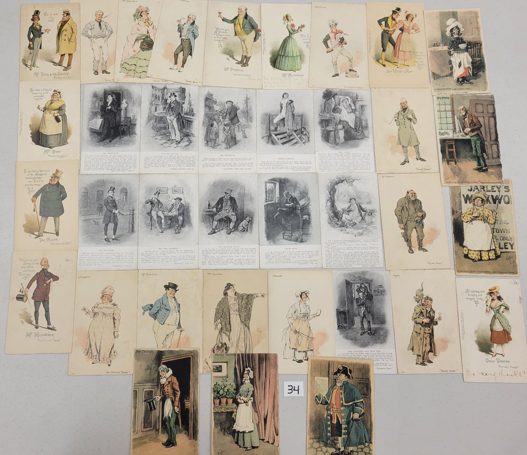 36 Dickens postcards.