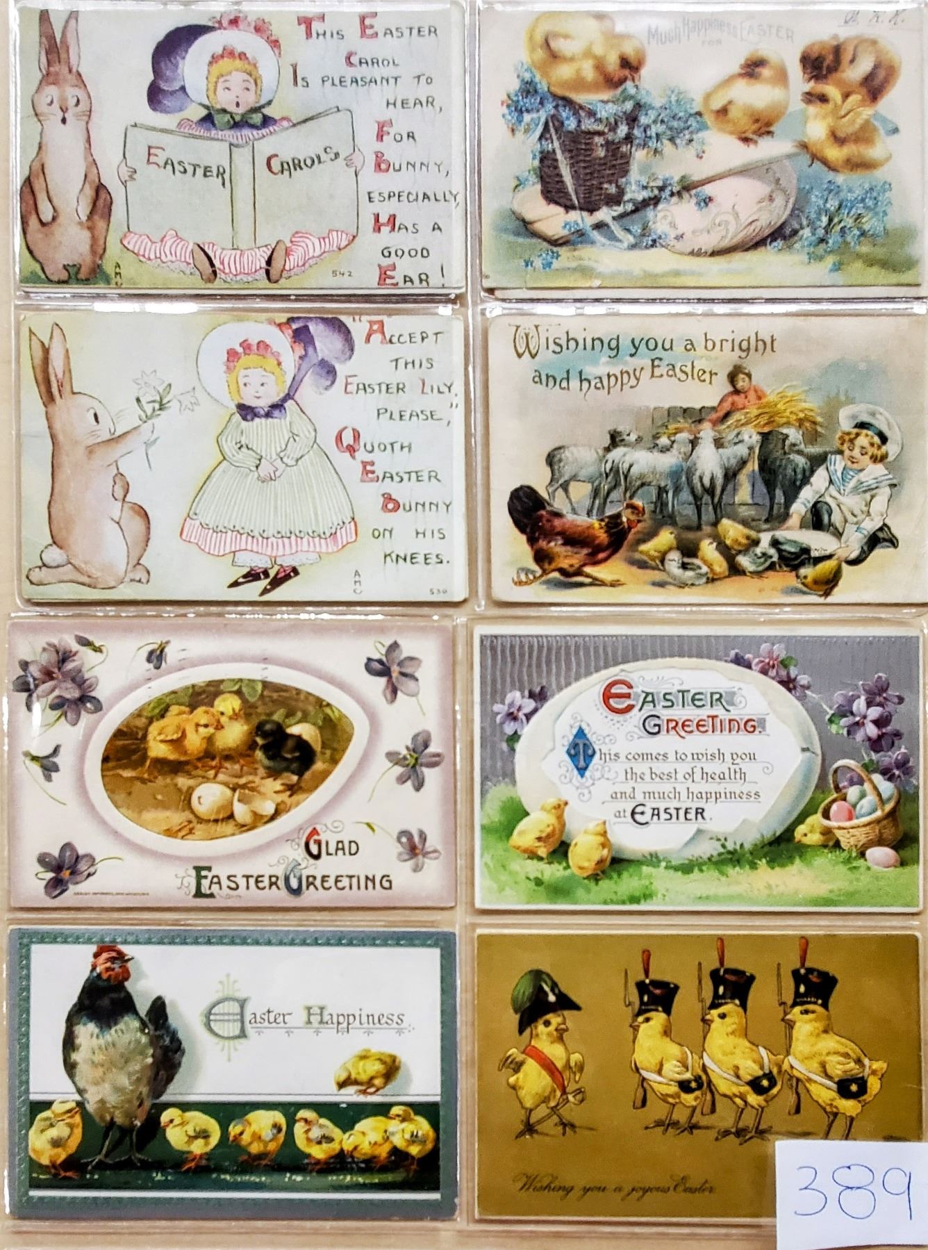 Over 100 holiday postcards. Easter, Thanksgiving, Christmas, etc. Most have children in them. Some animals.