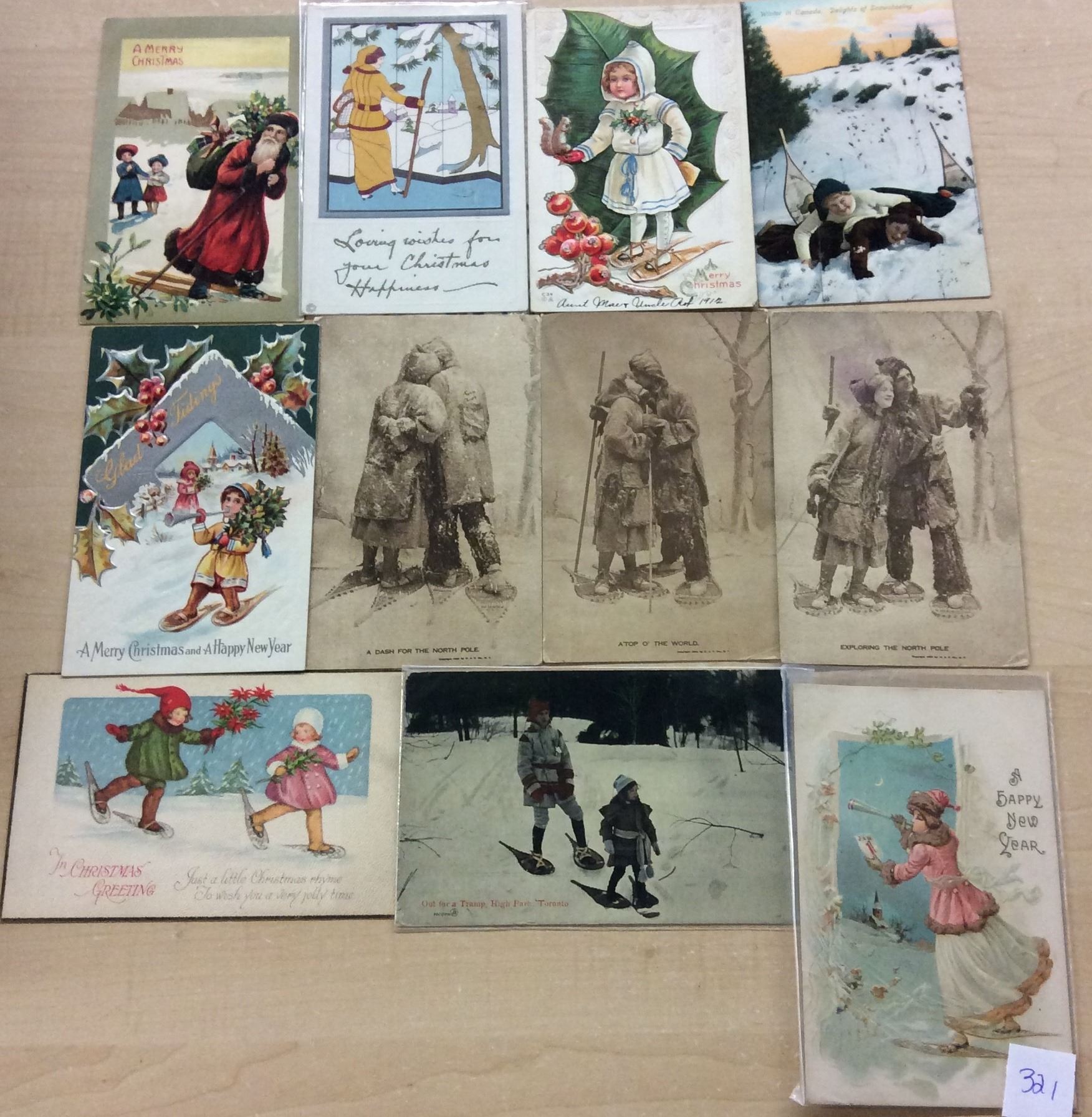 38 postcards of children in the snow, sledding, wearing snow shoes, etc.