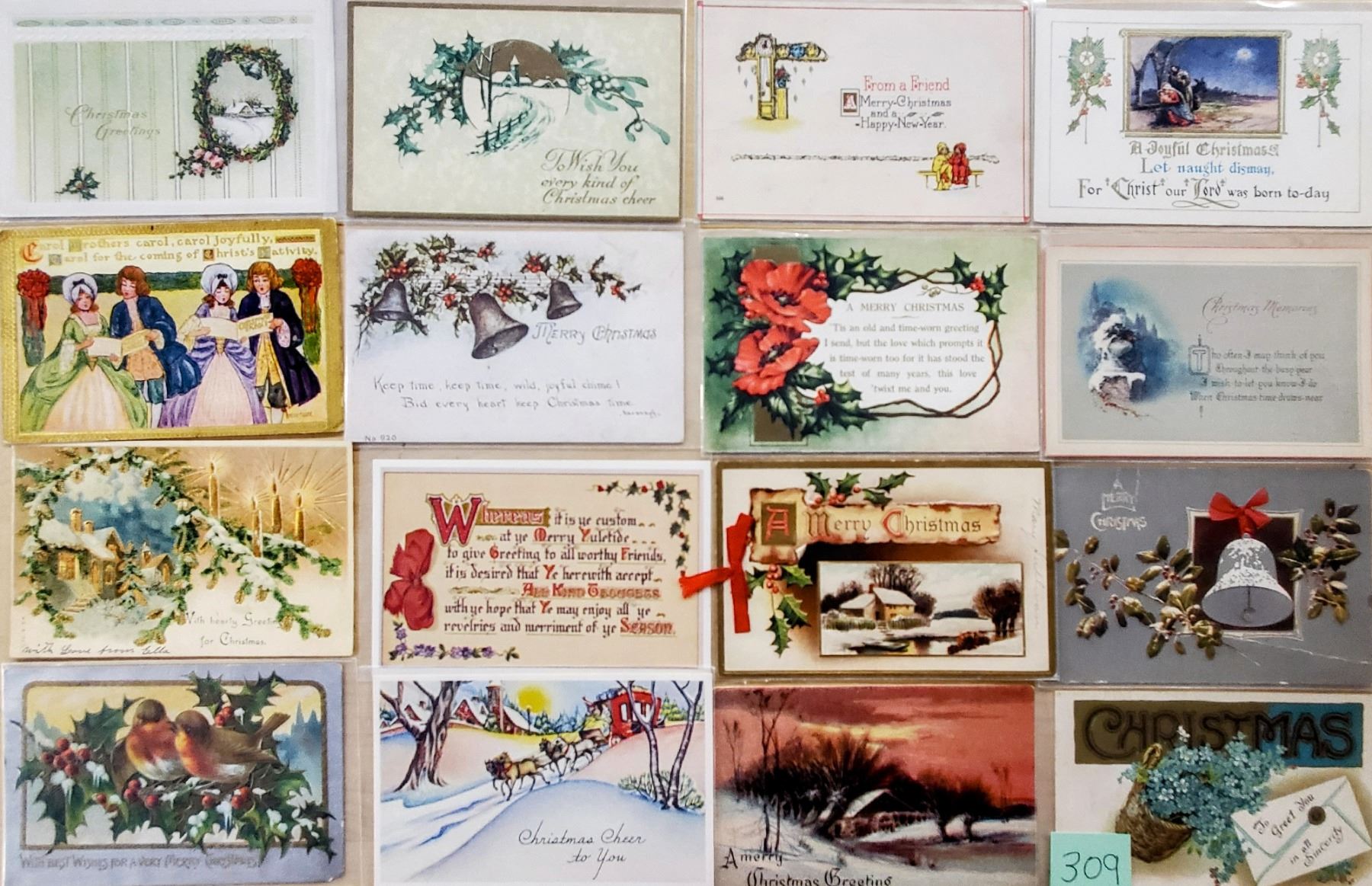 Over 300 Christmas postcards.