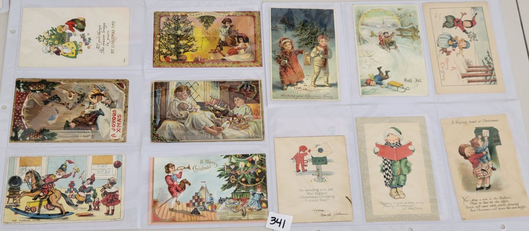 Approx. 150 children Christmas postcards. Animals, dolls, toys, etc.