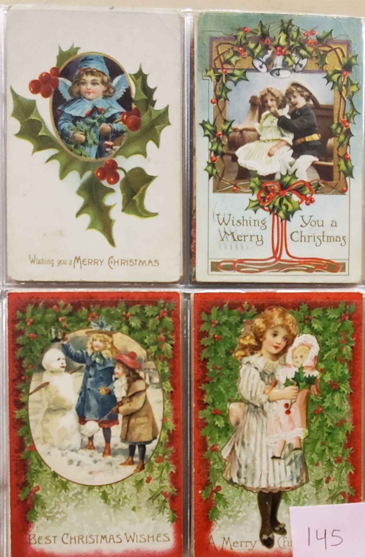 Over 140 Christmas postcards. Children, a few Santa, Winsch, embossed, ladies, Tuck, etc.