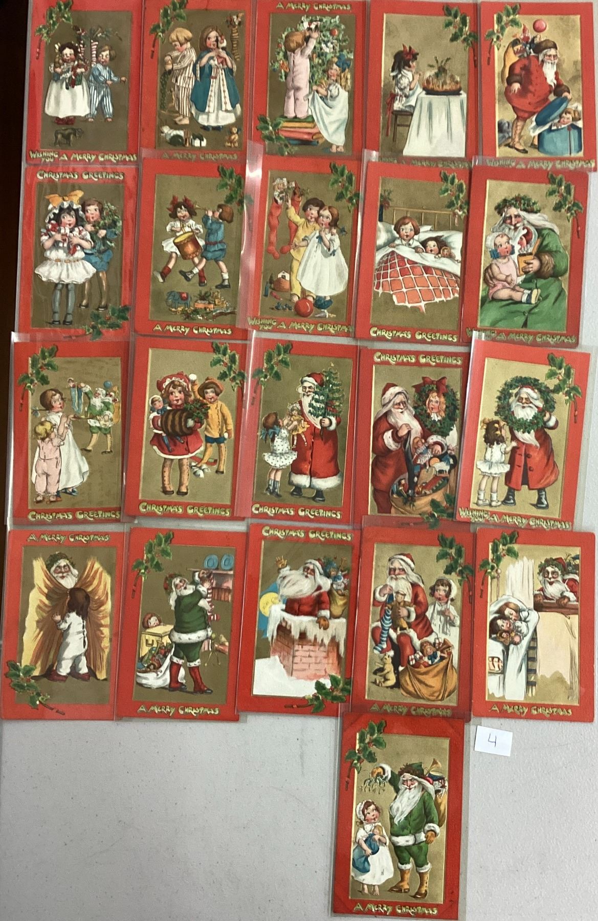 Christmas Tuck Santa & Children Red Border Crimson & Gold 21 Postcards