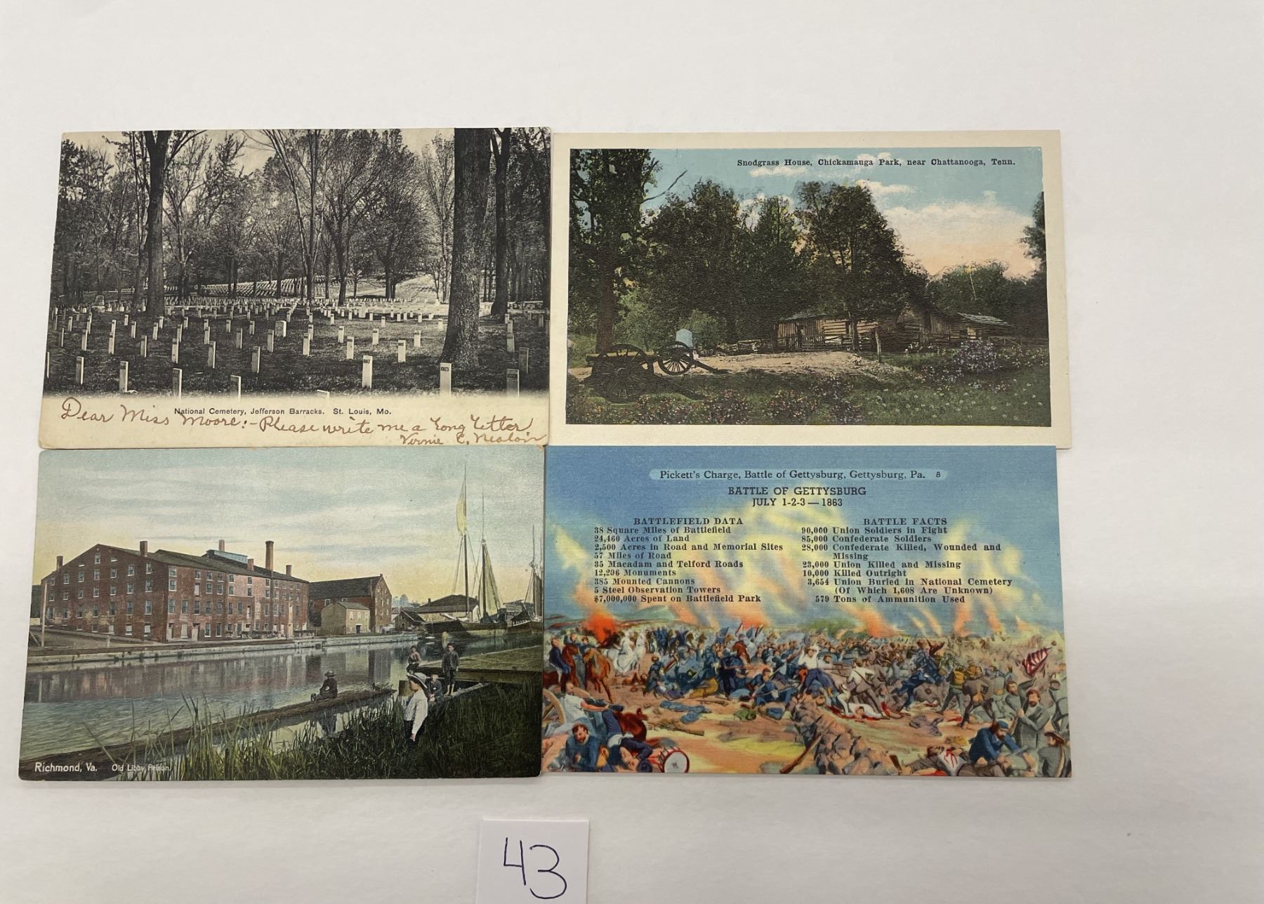 Over 100 Civil War postcards. Greetings, Battle Scenes, soldiers, etc. Early.