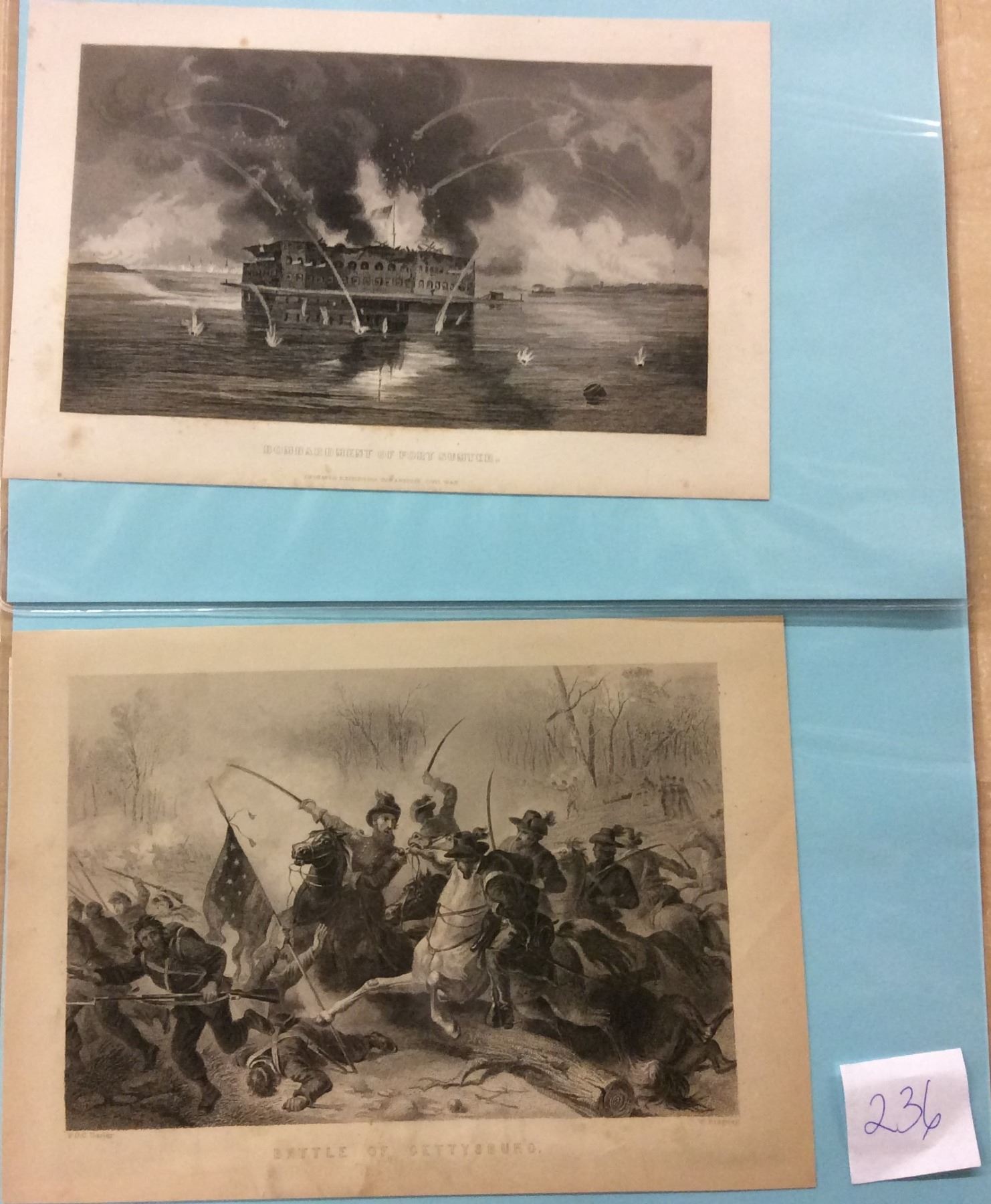 Approx. 75 Civil War prints by Johnson Fry & Co, published NY. Union, Confederate, battles, generals, presidents, etc.
