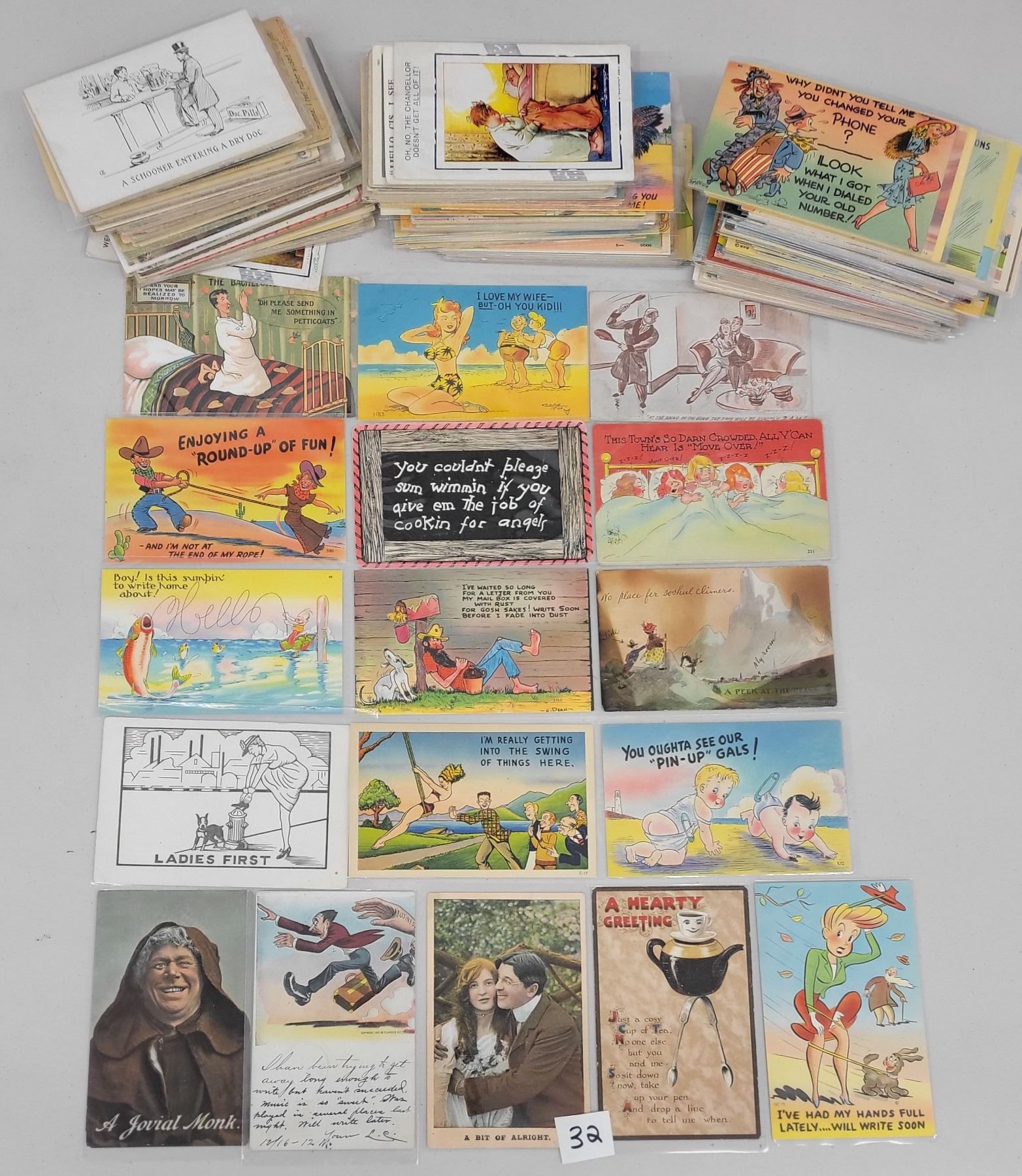 Approx. 230 comic postcards. Early to standard size chrome.