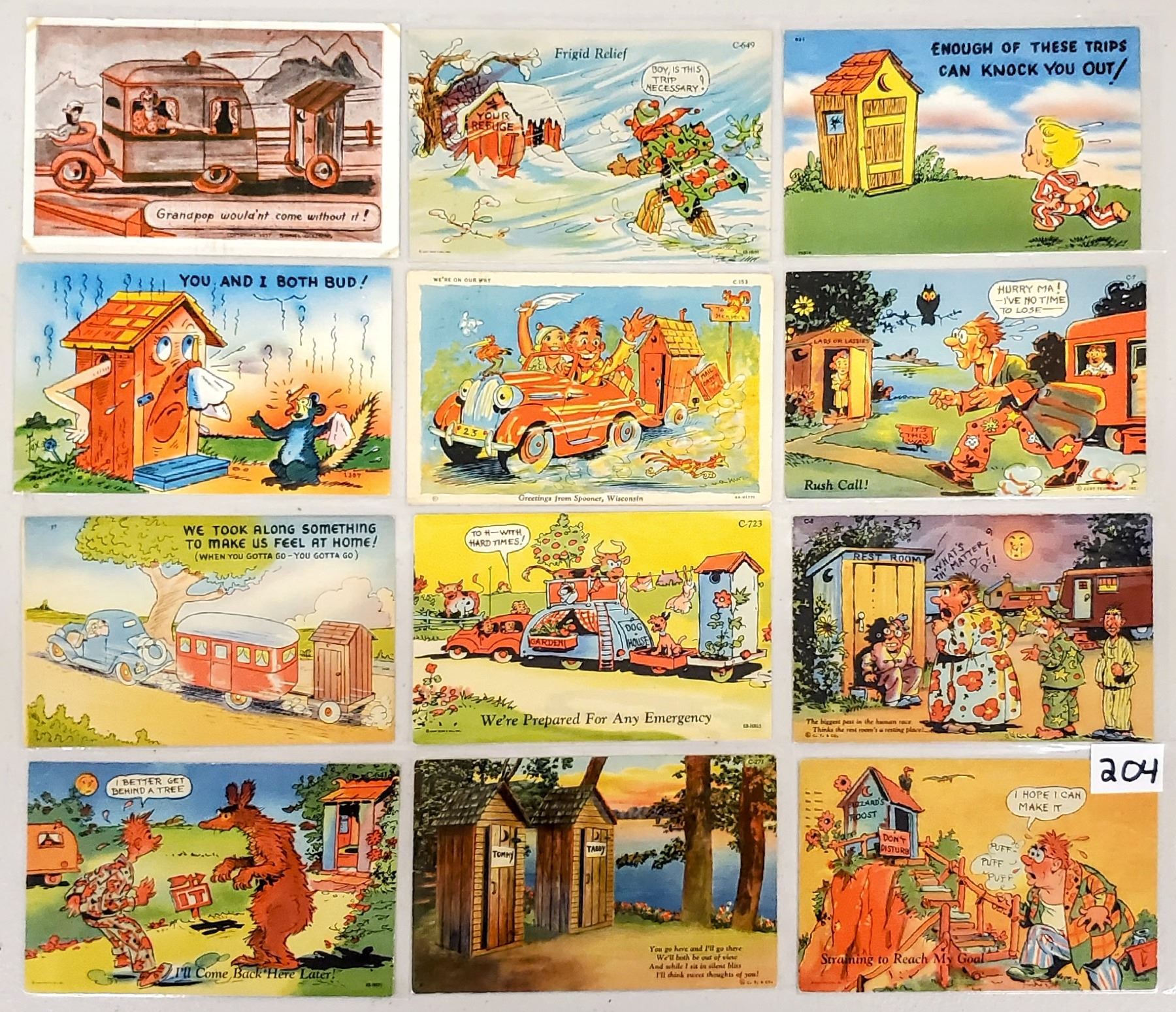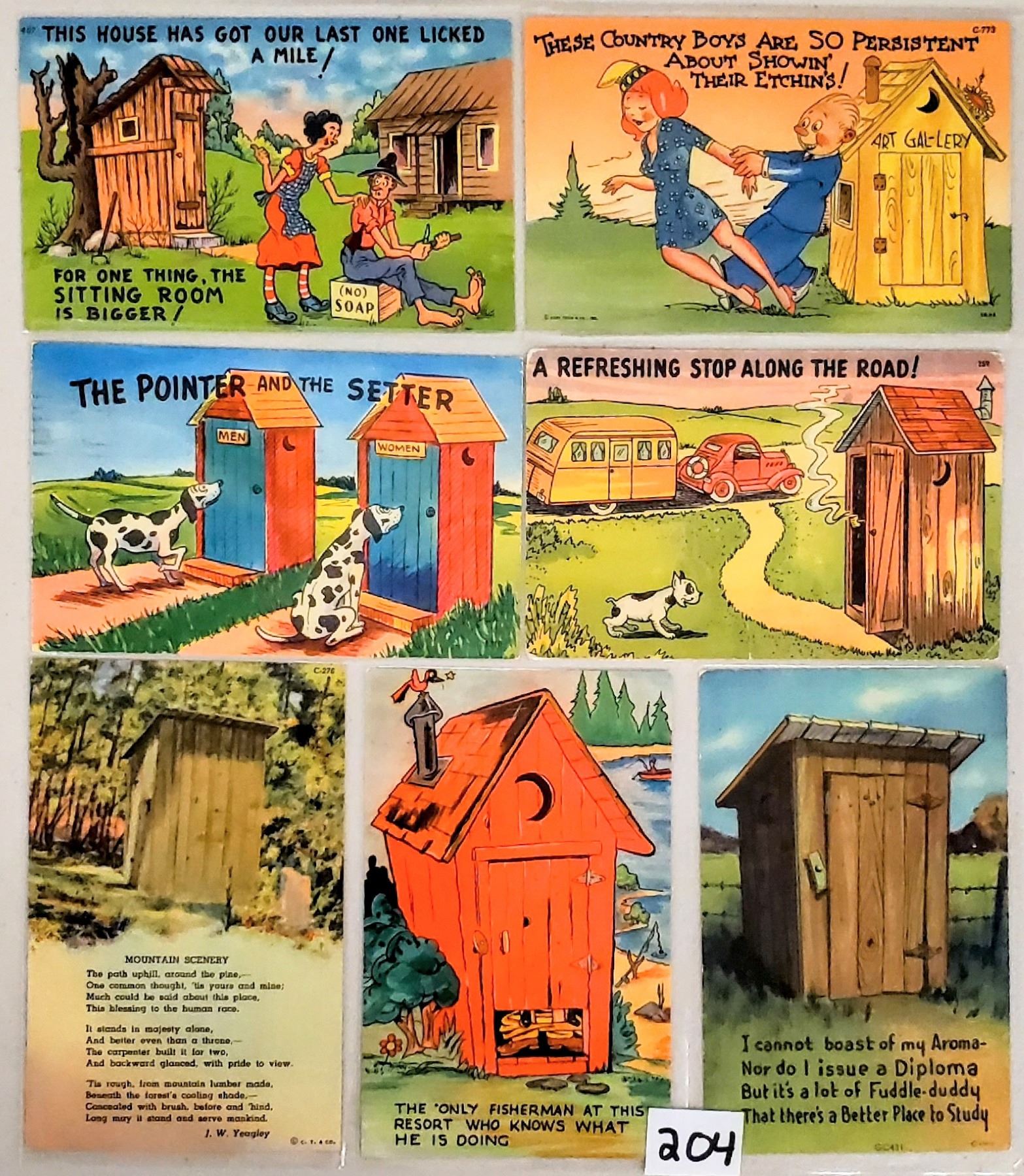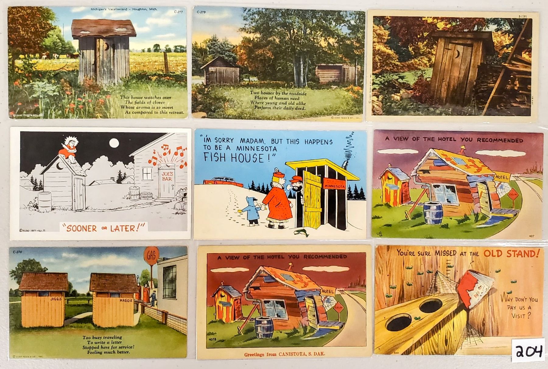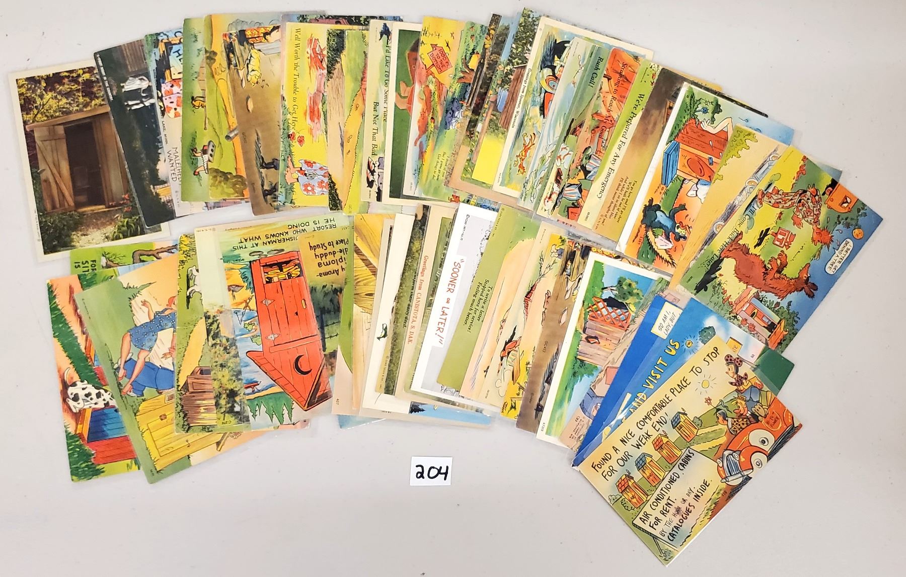 Over 50 outhouse postcards. Linen.