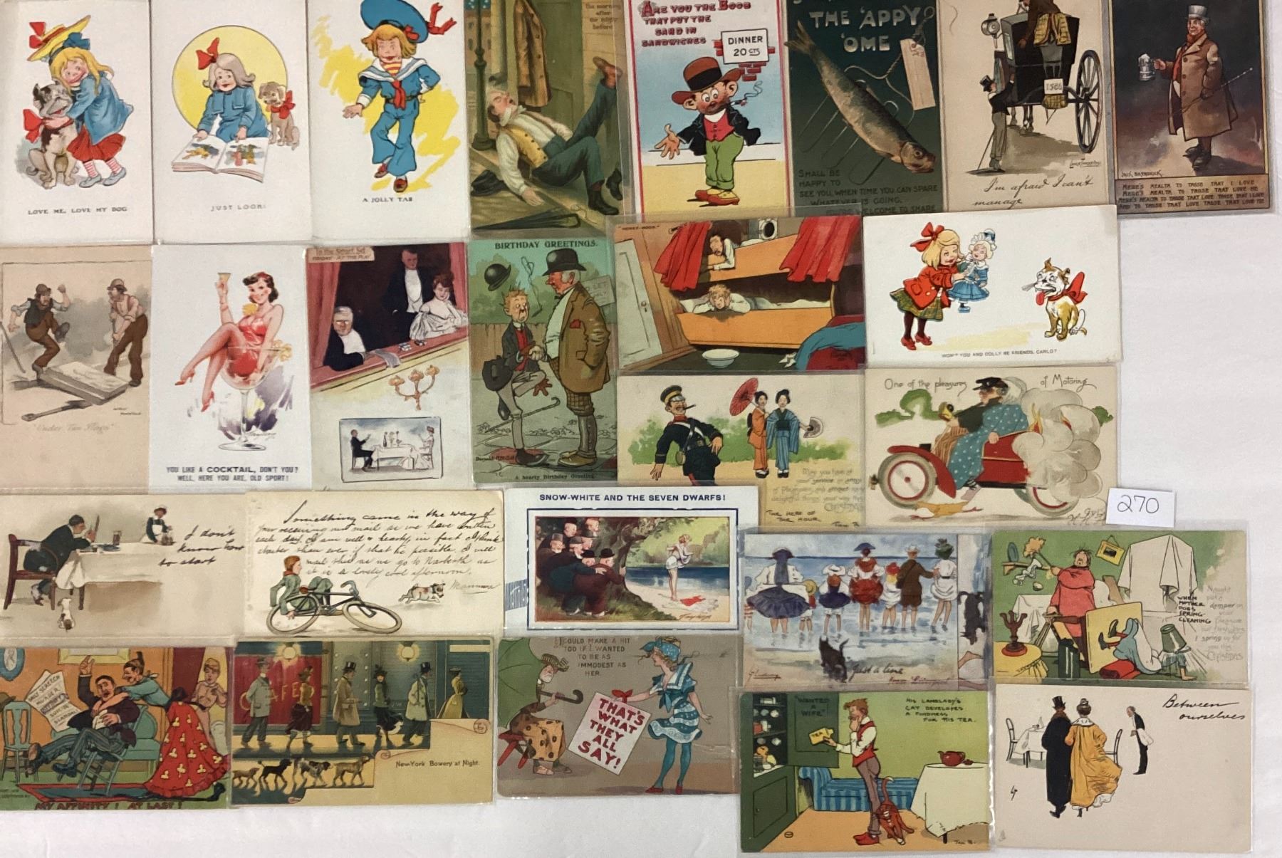 Over 85 comic postcards. Many Tom Browne, Tucks, etc.