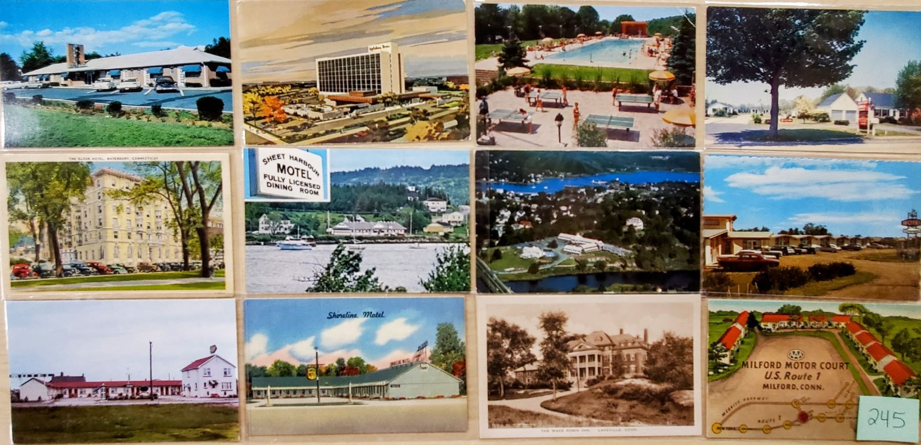 Over 40 cards of Connecticut hotels & motels. Linen to standard size chrome.