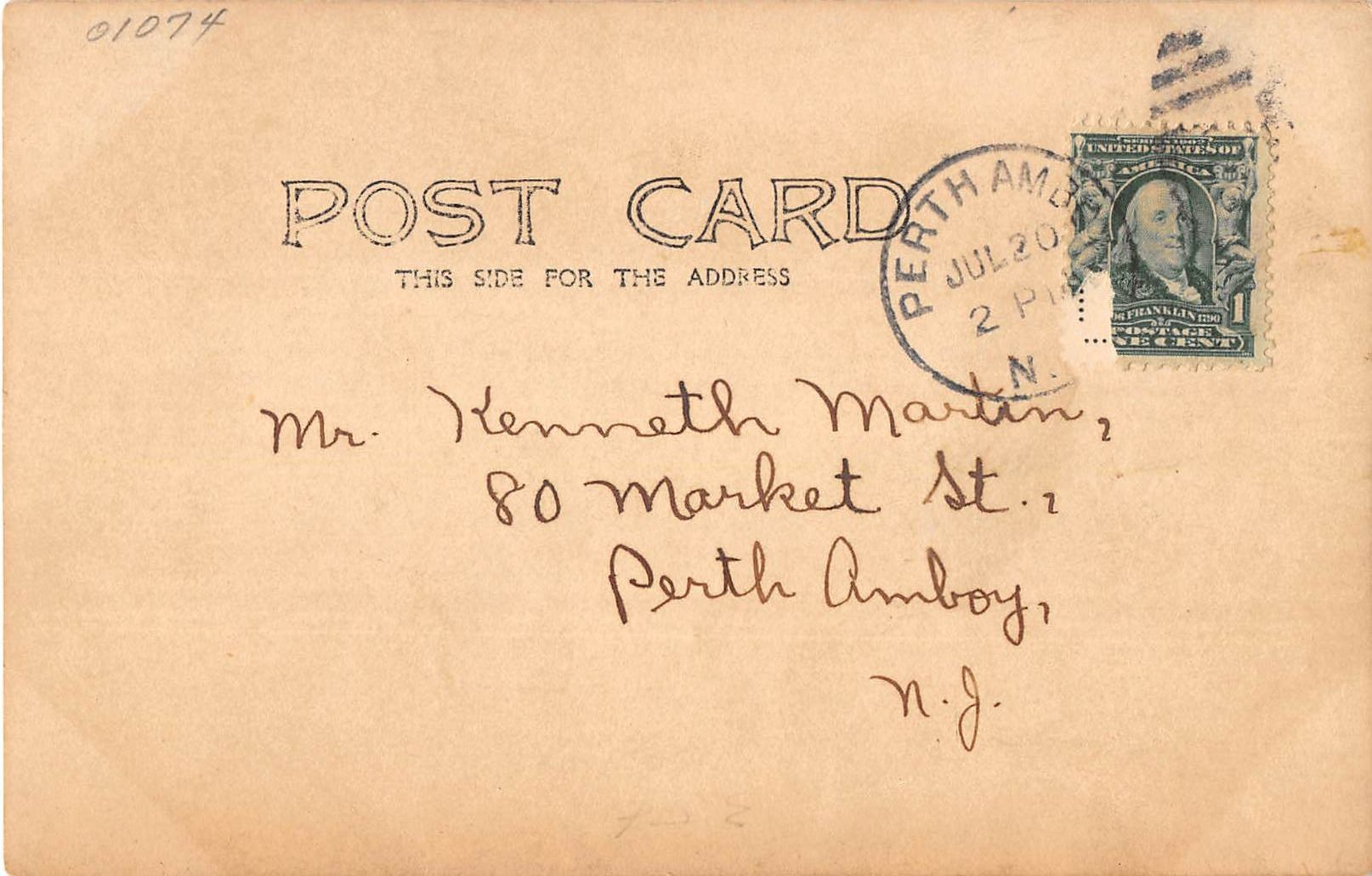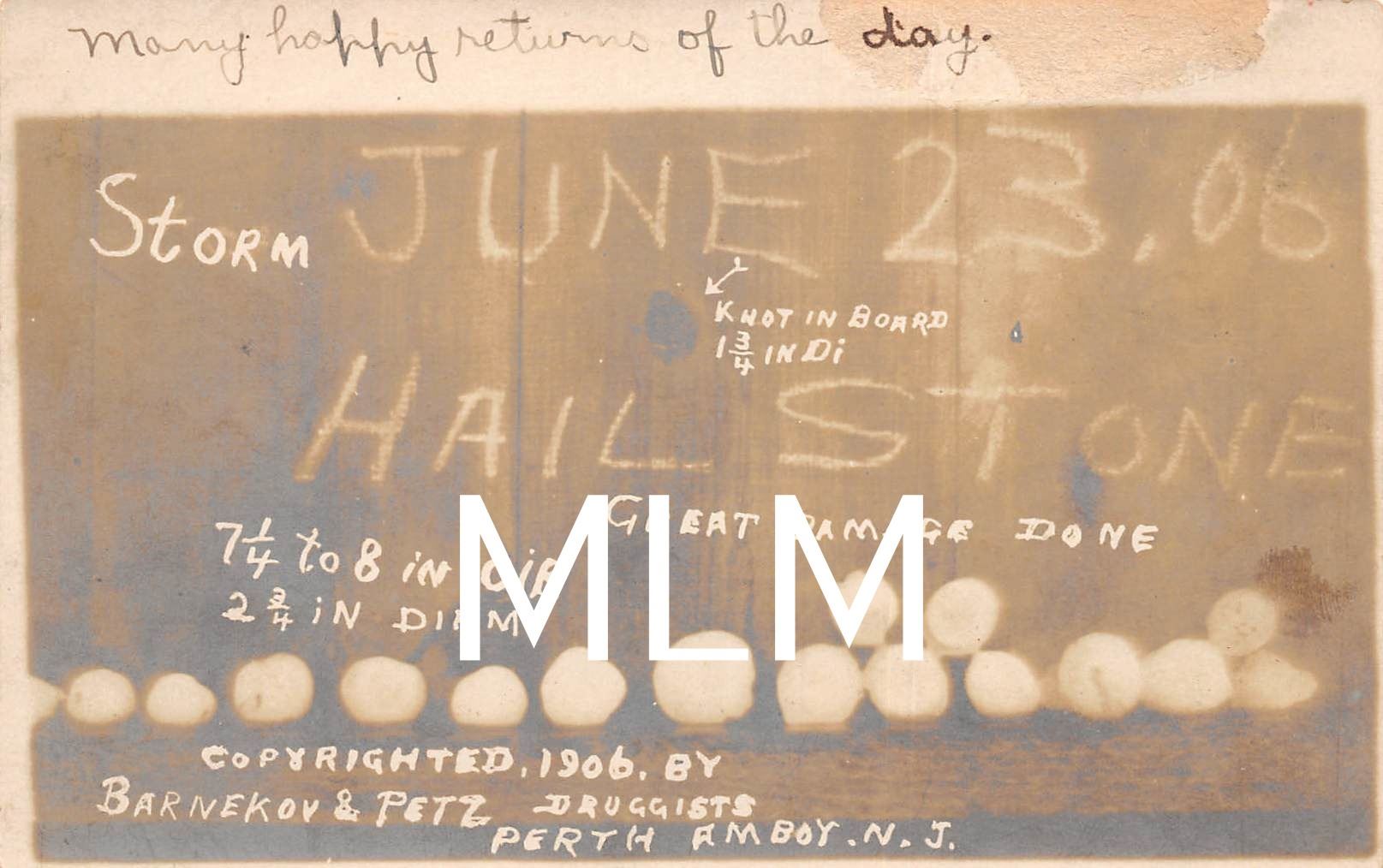 June 23, 1906 Hail Stone photo postcard, Perth Amboy, NJ. Damage upper right edge in the white. Postal used.