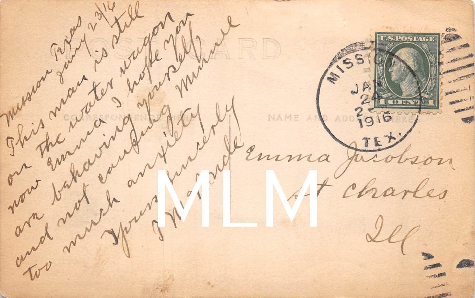 Dull corners and crease/wear lower left corner. Postmarked Mission, Texas 1916.