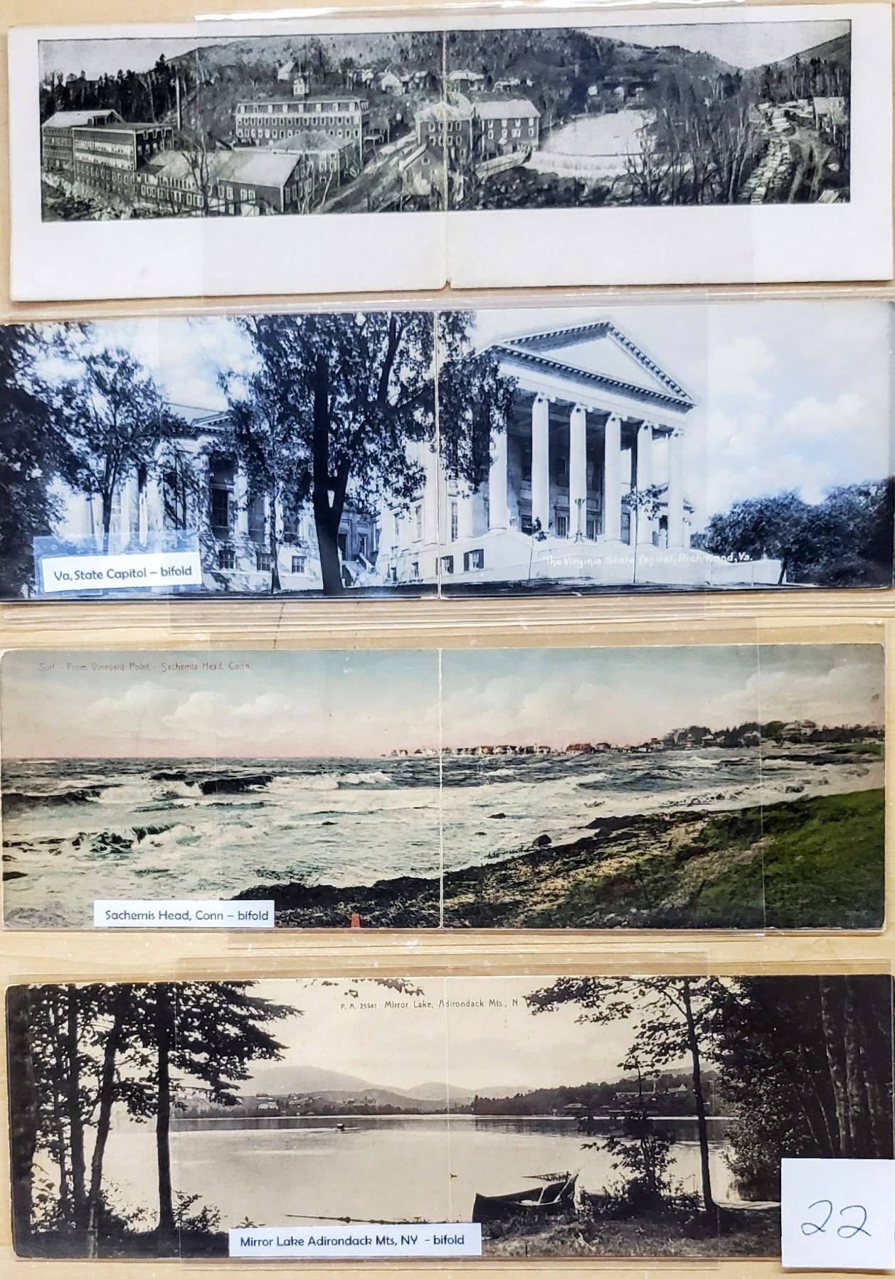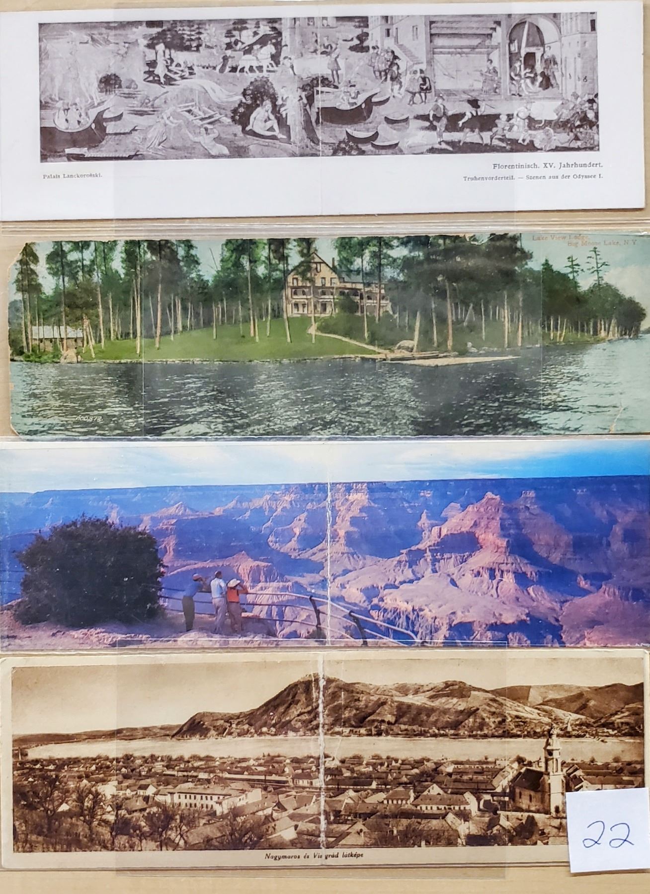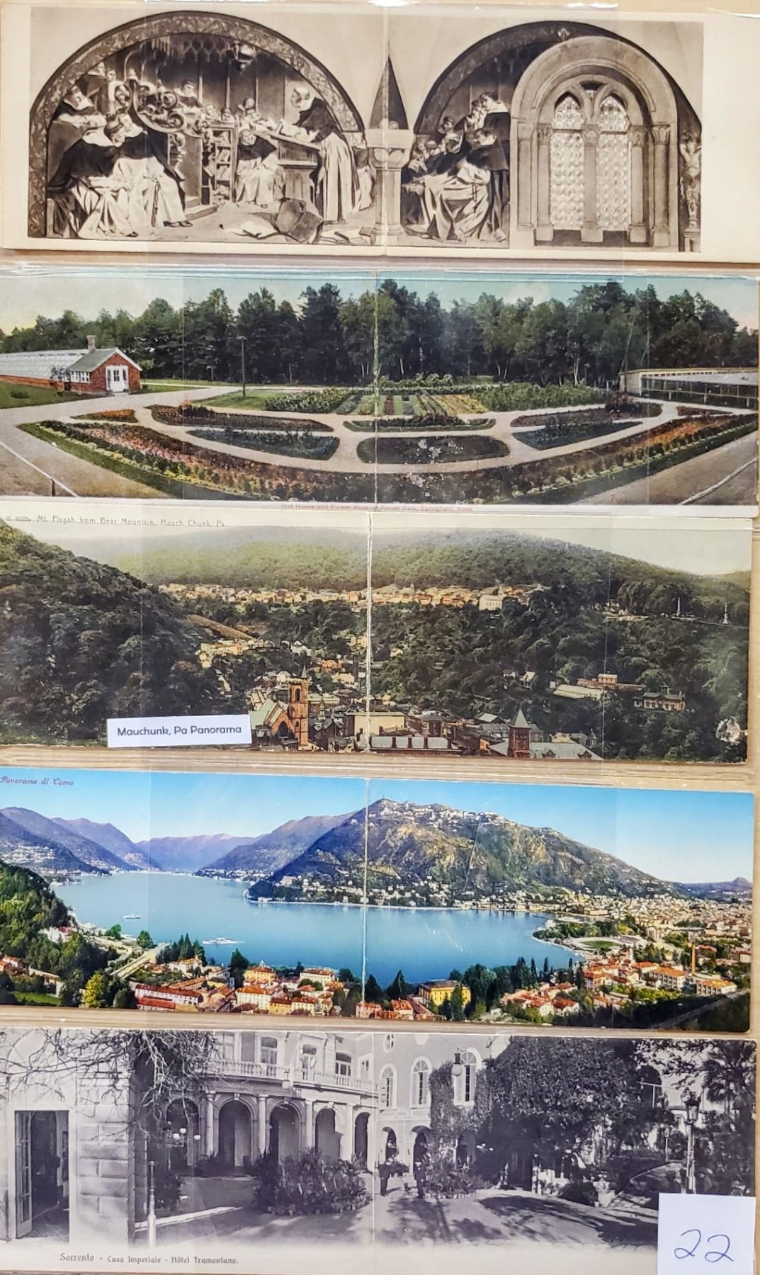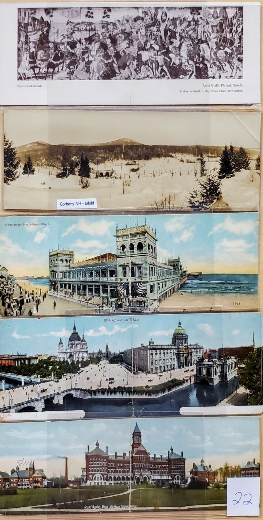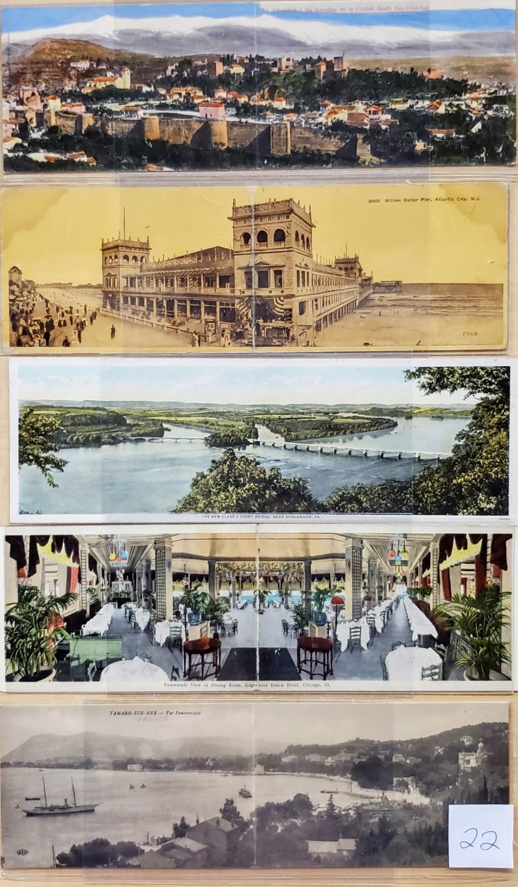 23 different doublefold postcards. Mostly early, one chrome era. 9 International, the rest USA.
