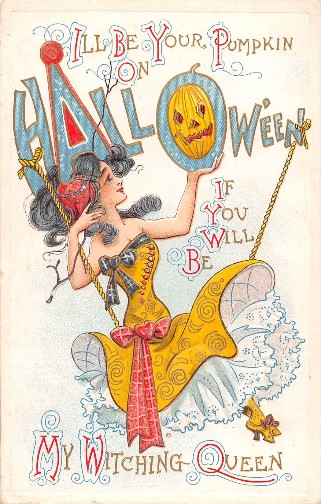 Dwig Halloween Woman Swinging Holding Pumpkin Postcard