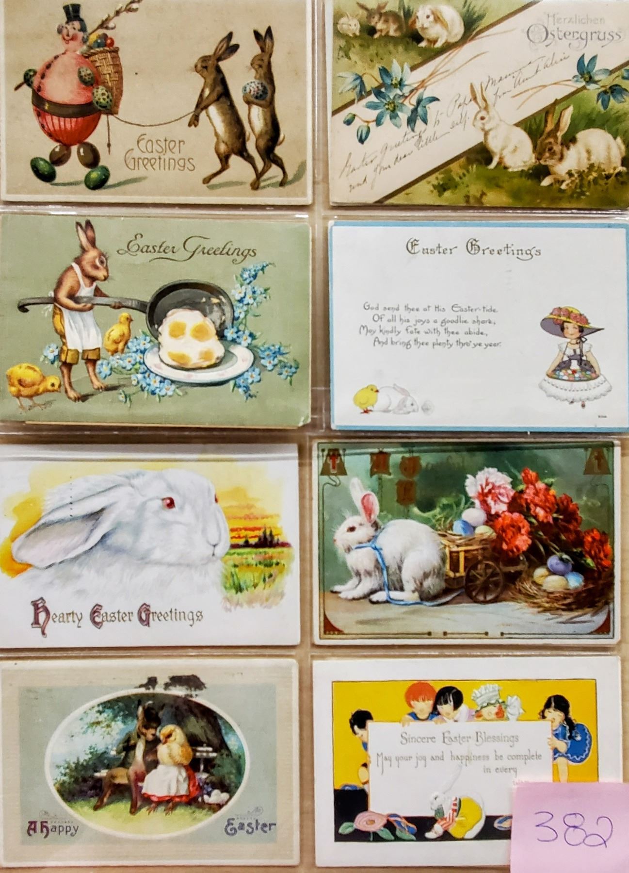 Over 110 postcards. All with rabbits. Some dressed. Children, etc.