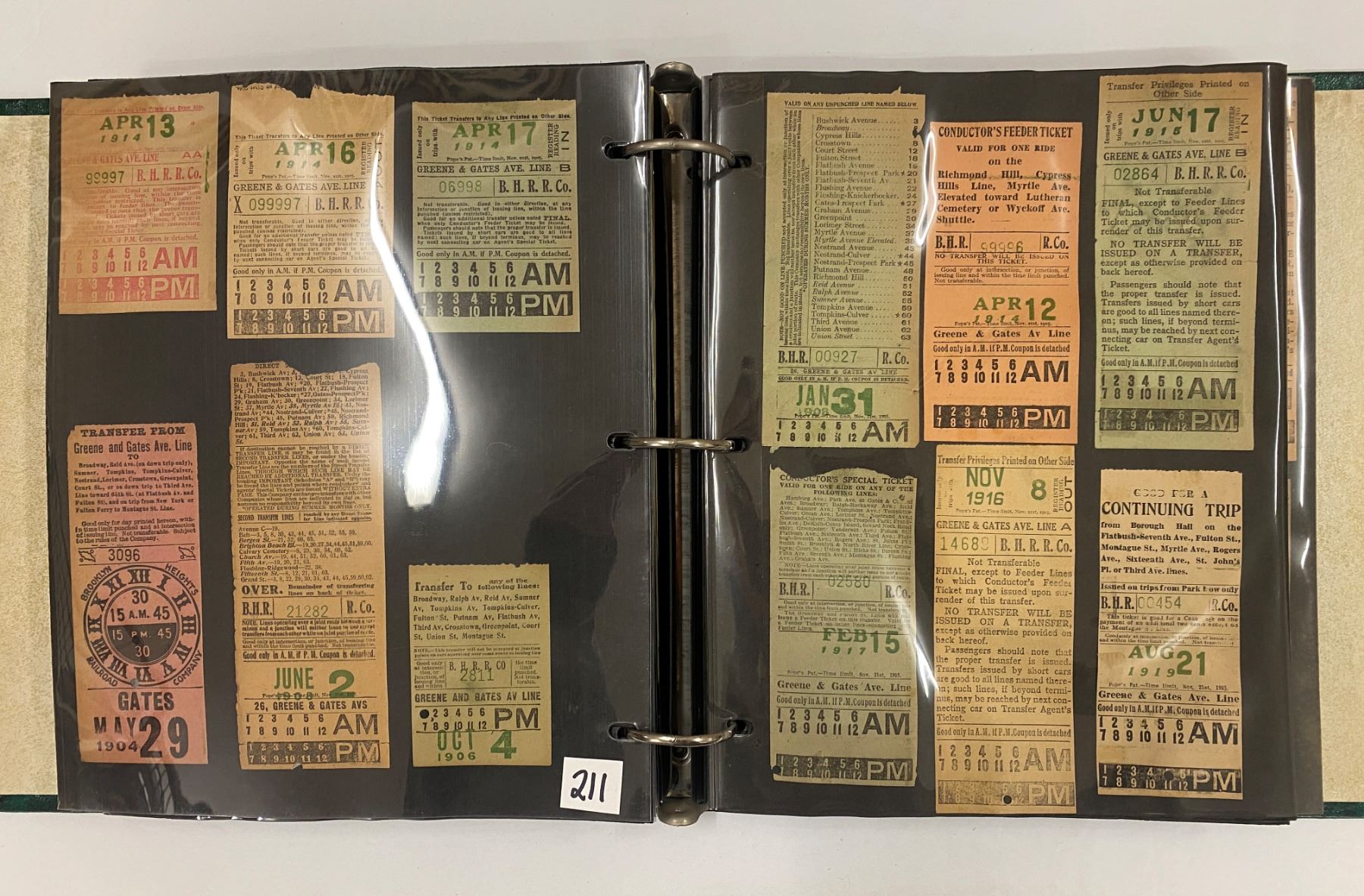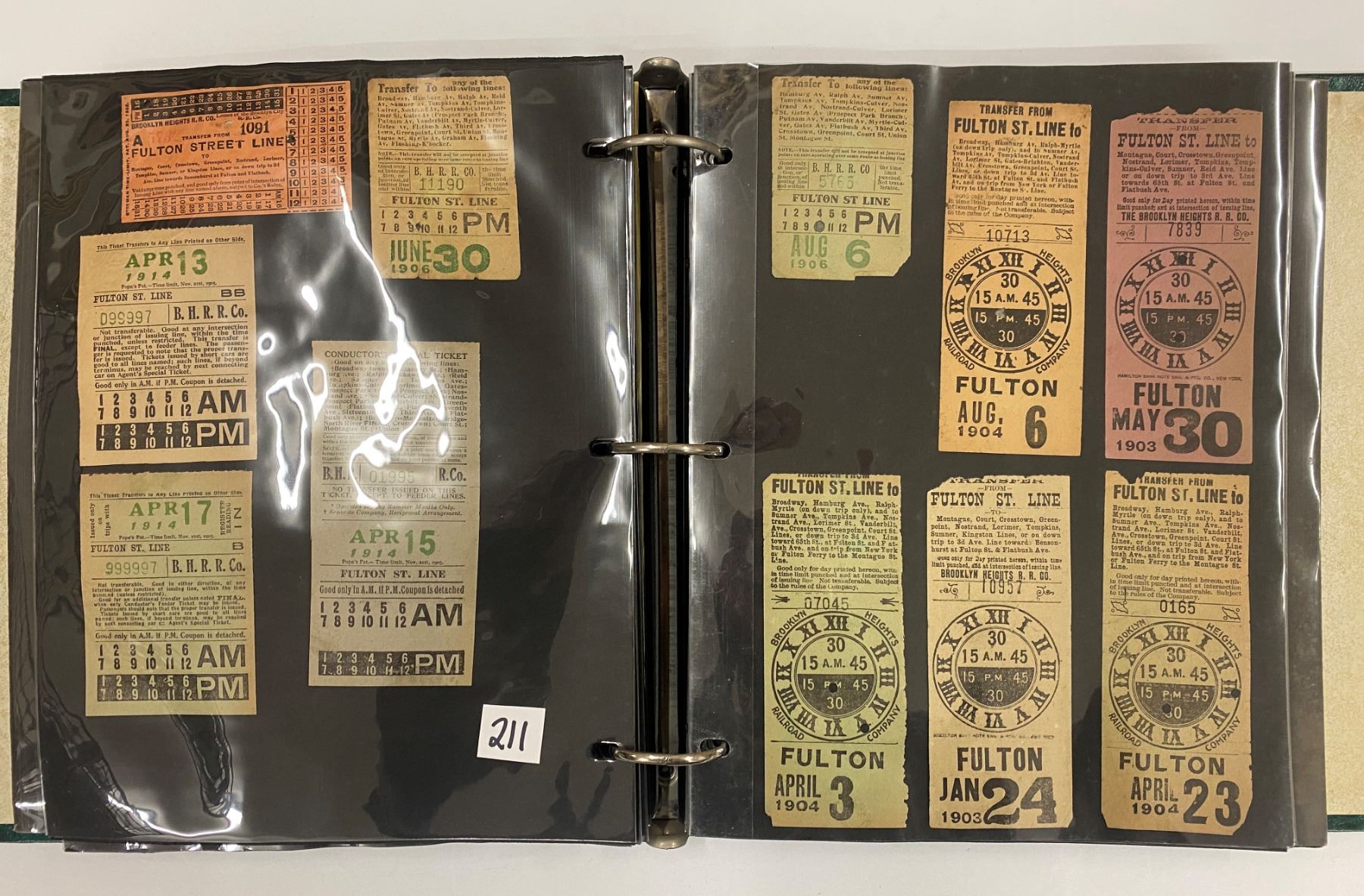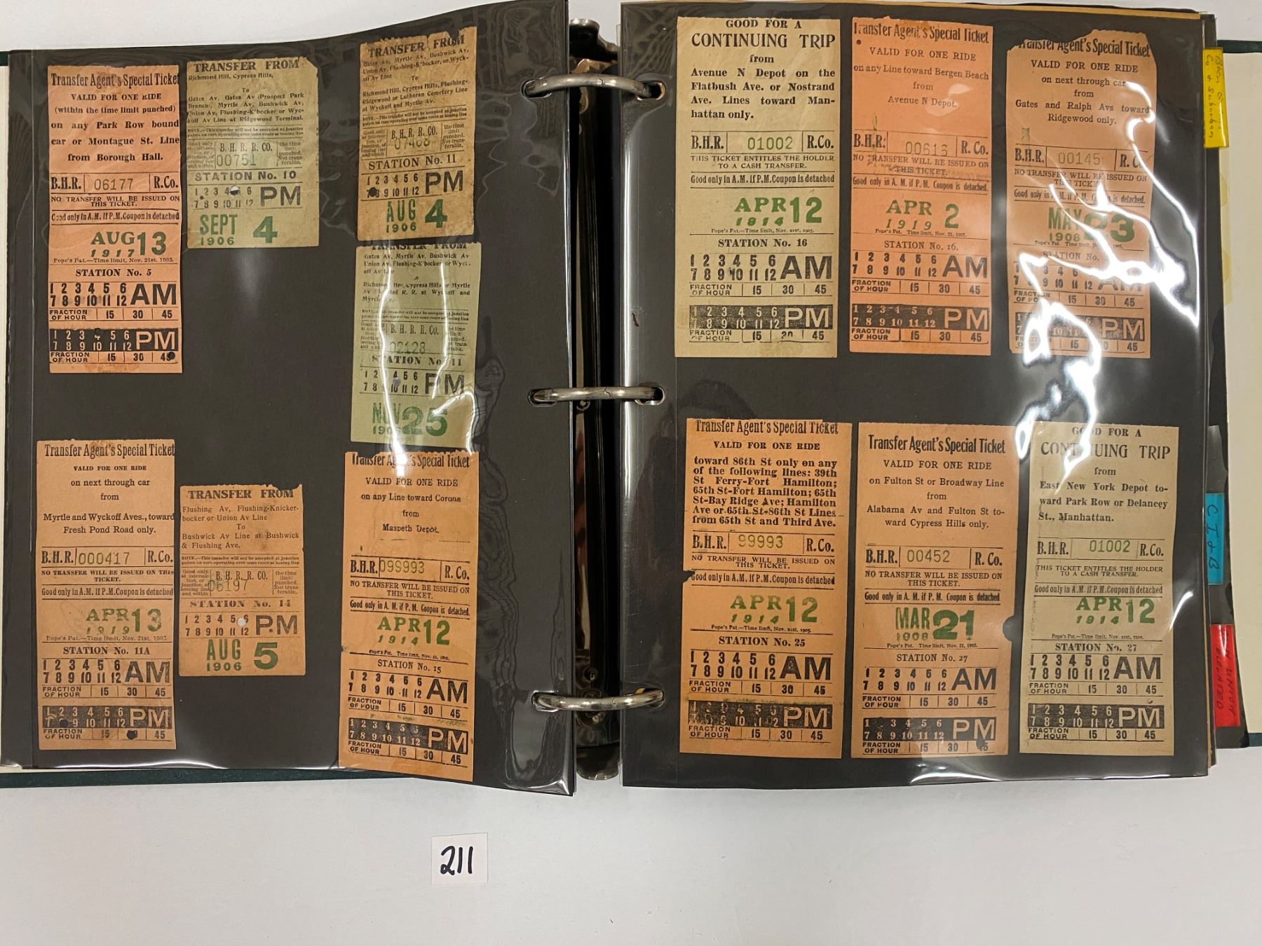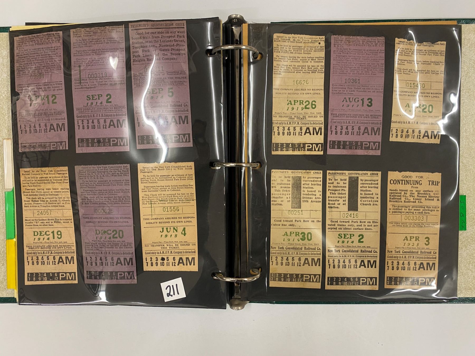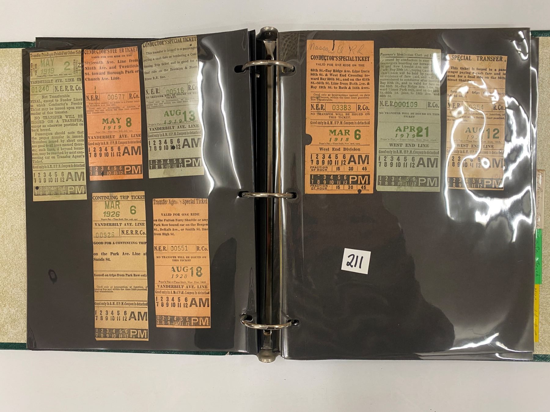 Over 95 pages of vintage NYC train & transportation related paper items and tickets. Some as early as 1905. Most are attached to the paper pages with slight tape on the back.