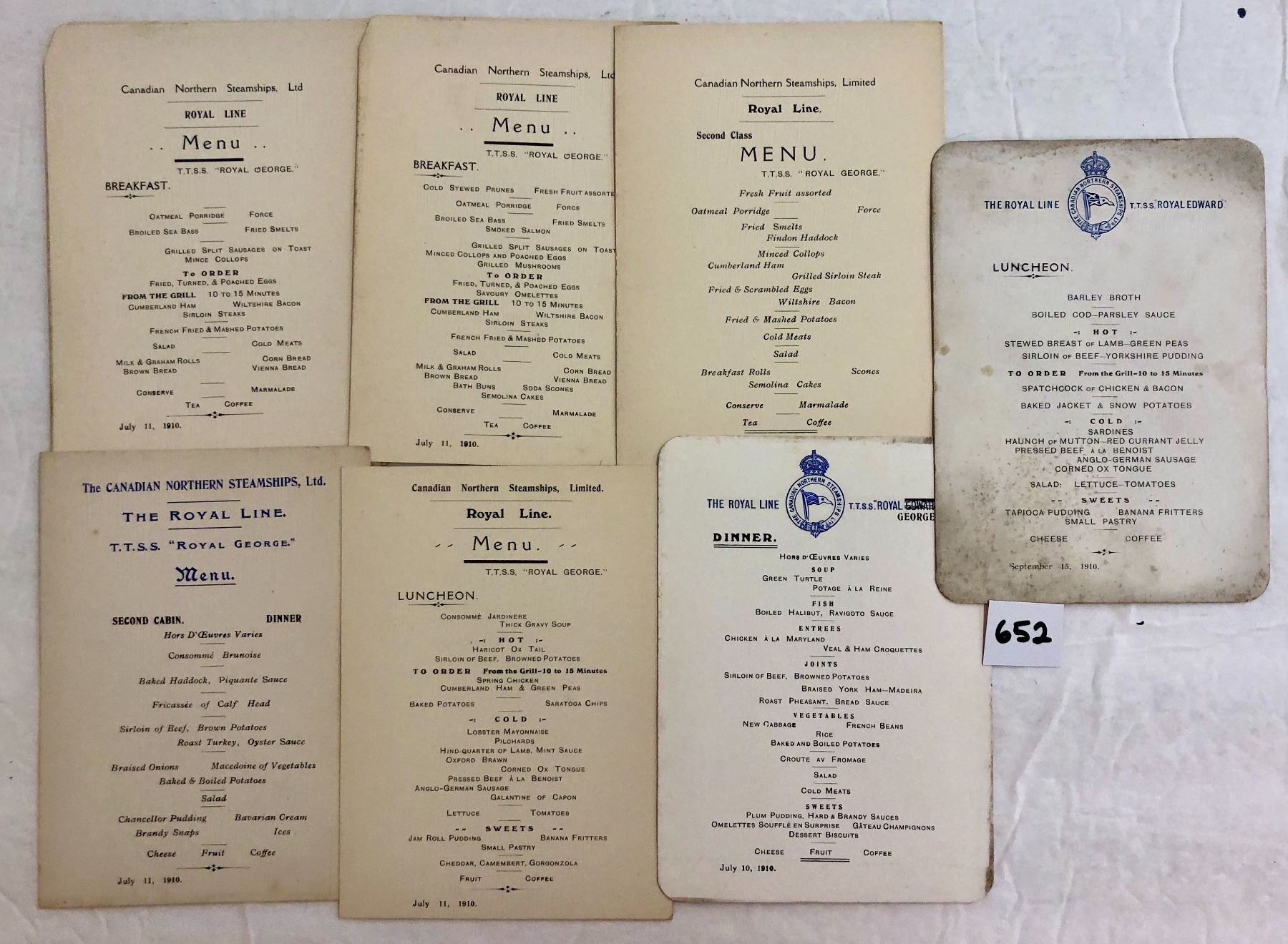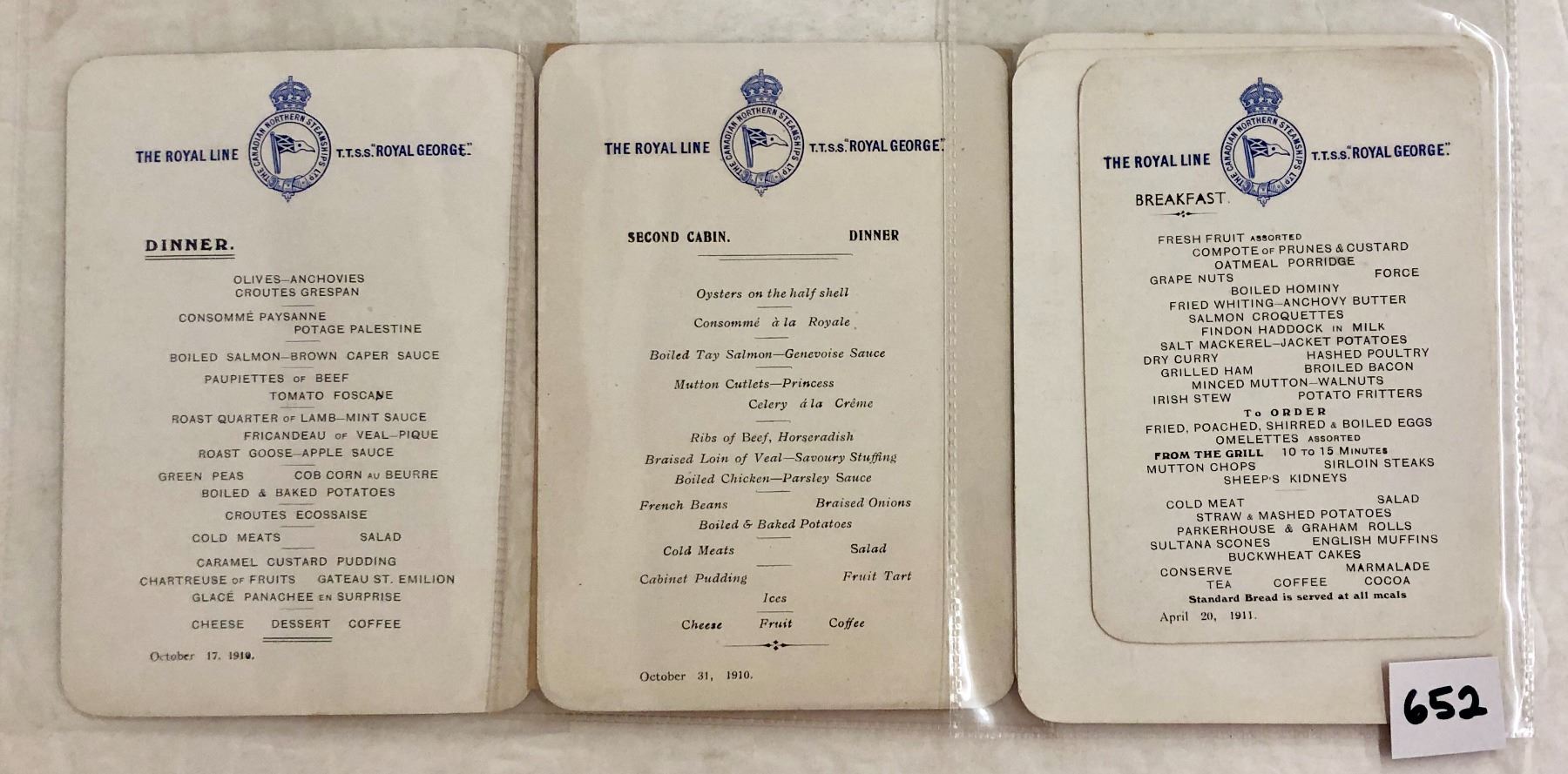 22 menu of the Royal George. The Canadian Steamship ltd.