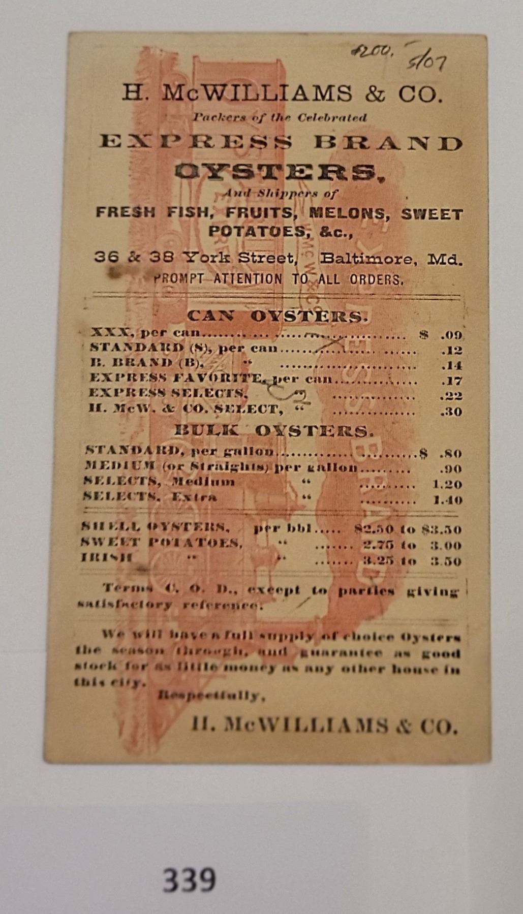 Express Brand Oysters Baltimore, Maryland Advertising Trade Cards