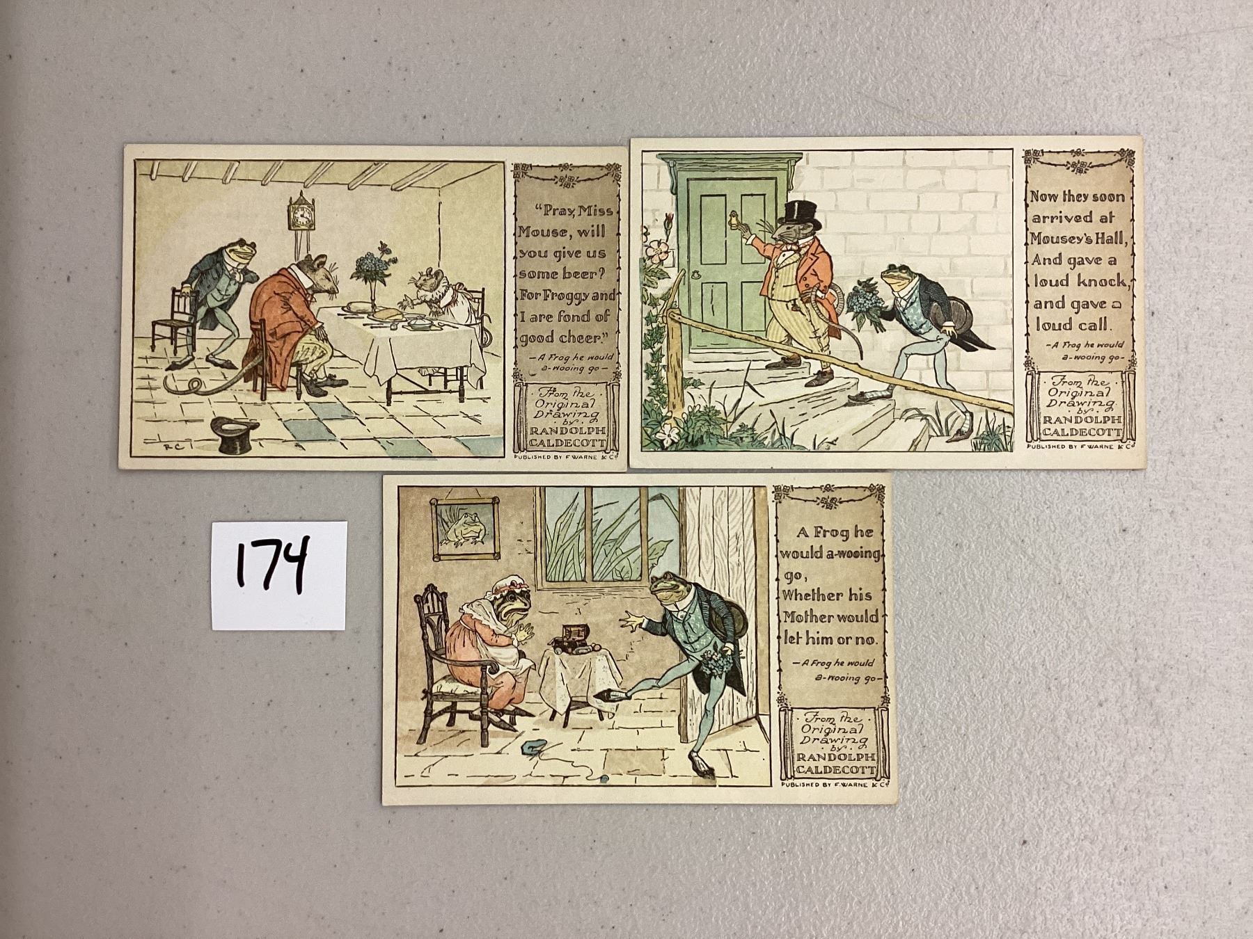 Fantasy Dressed Frogs & Mice Postcards by Randolph Caldecott 3 Cards
