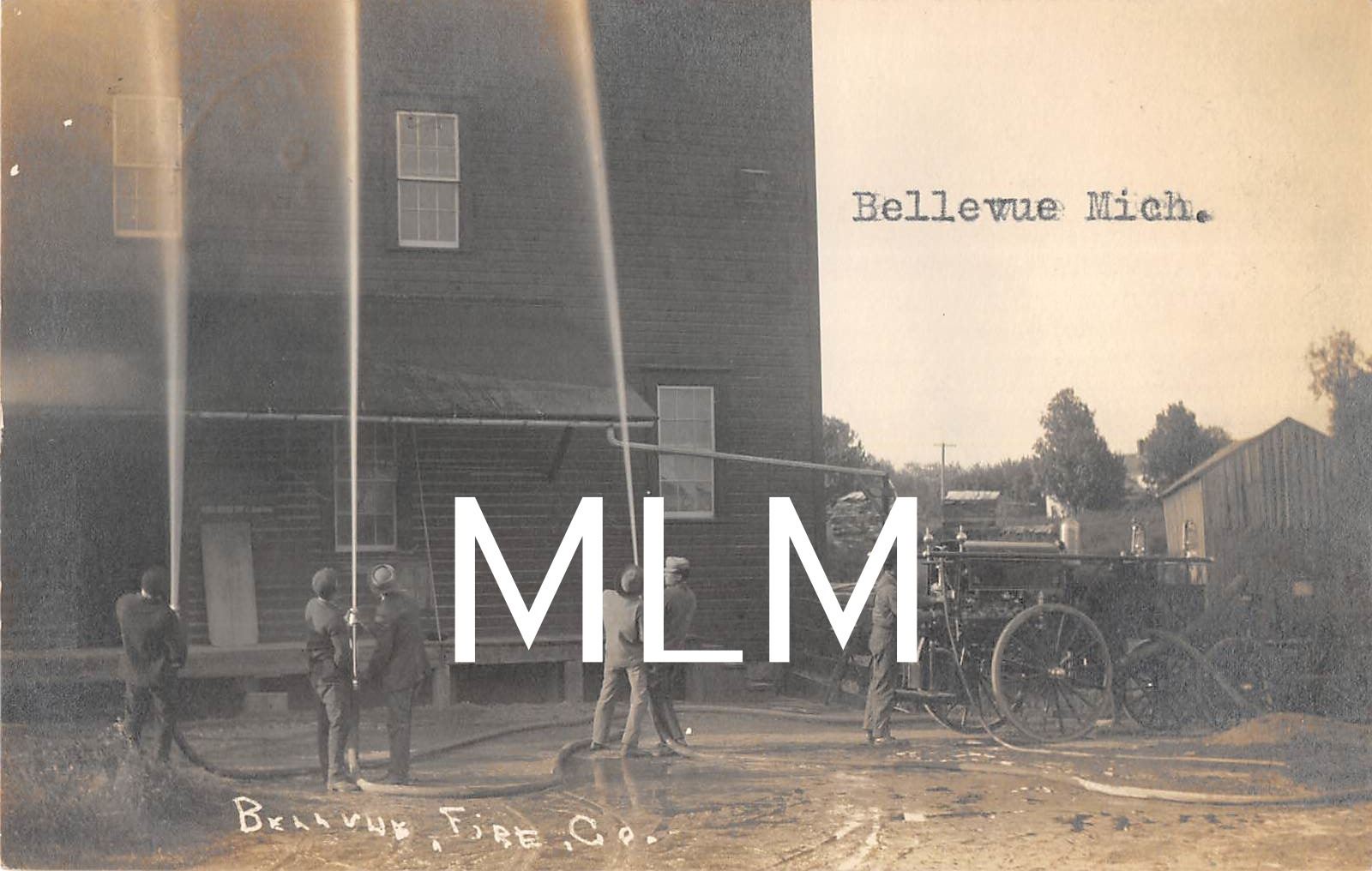 Fire Department Putting Out Fire Bellevue, Michigan Photo Postcard