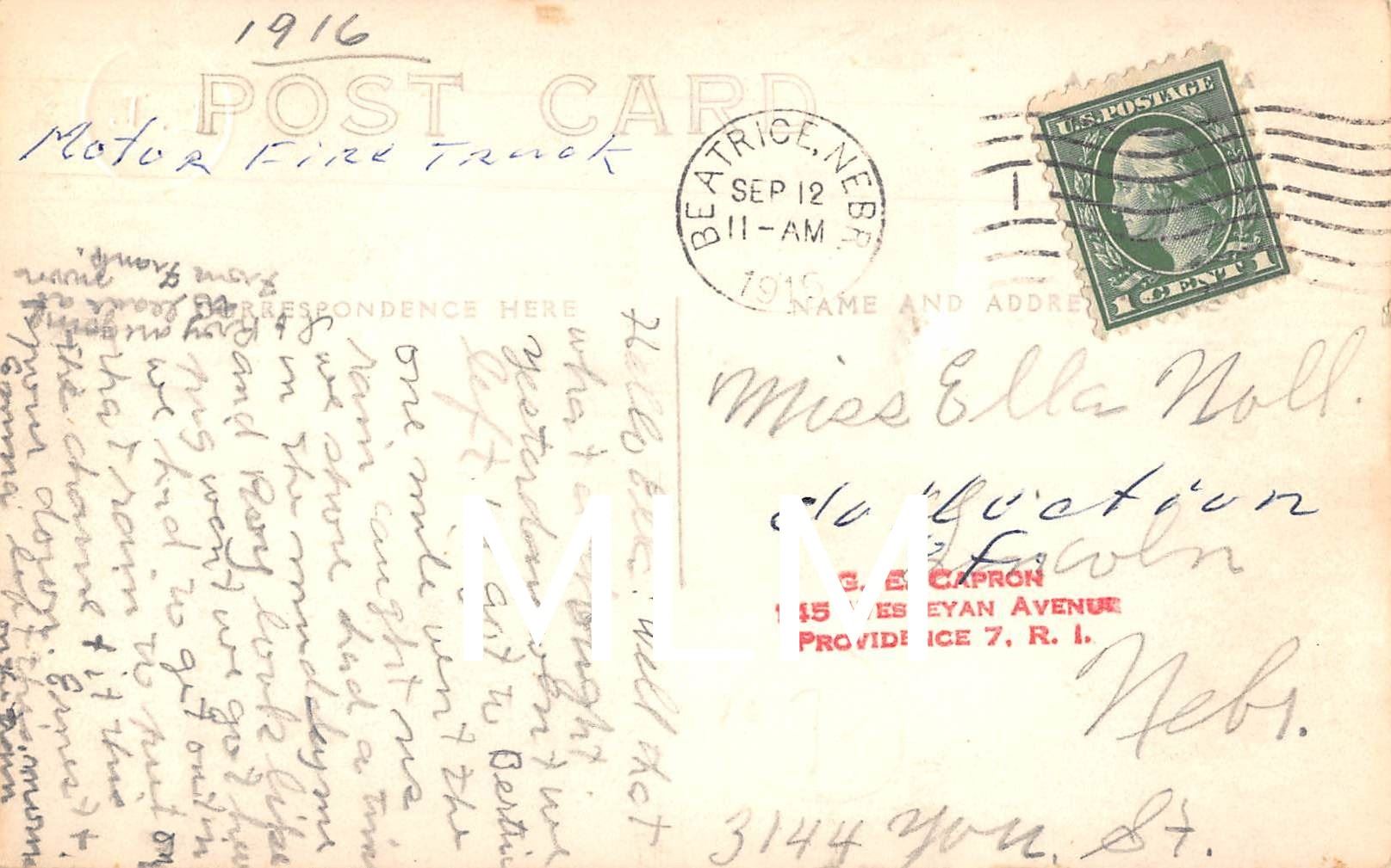 Fire Engine in Front Fire Department Beatrice, Nebraska Photo Postcard