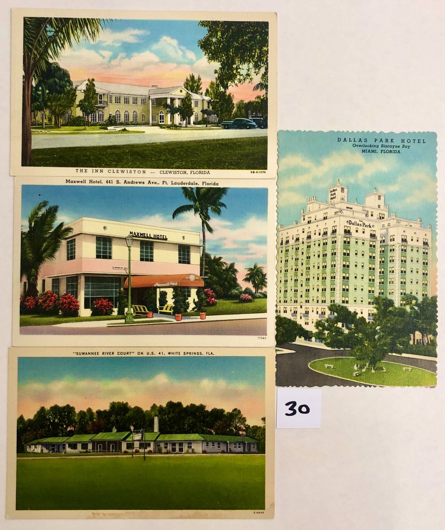 Over 80 FL postcards. Mostly linen, mostly hotels, motels, inns.