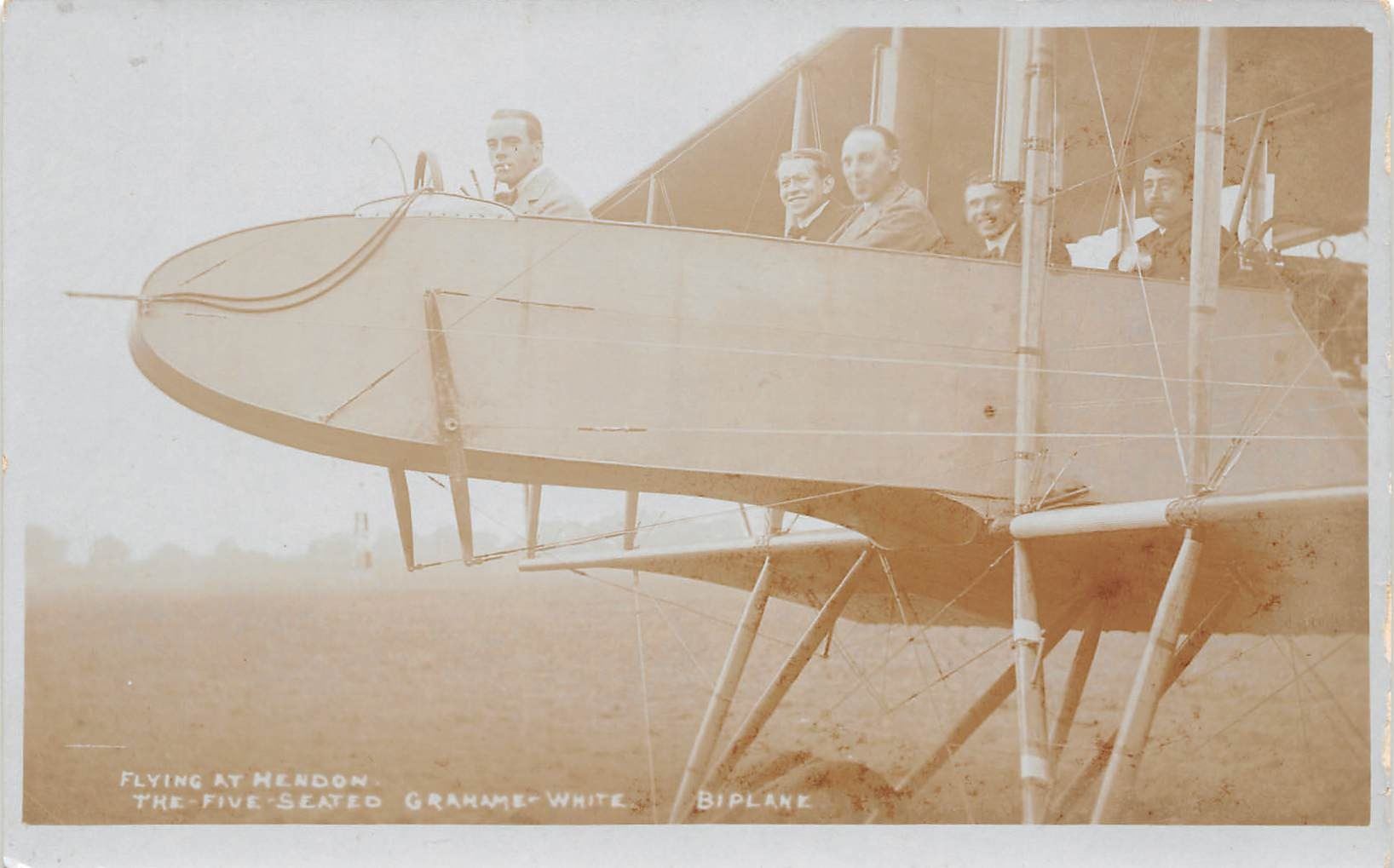Flying at Hendon, England Five Seated Grahame-White Biplane Photo Postcard