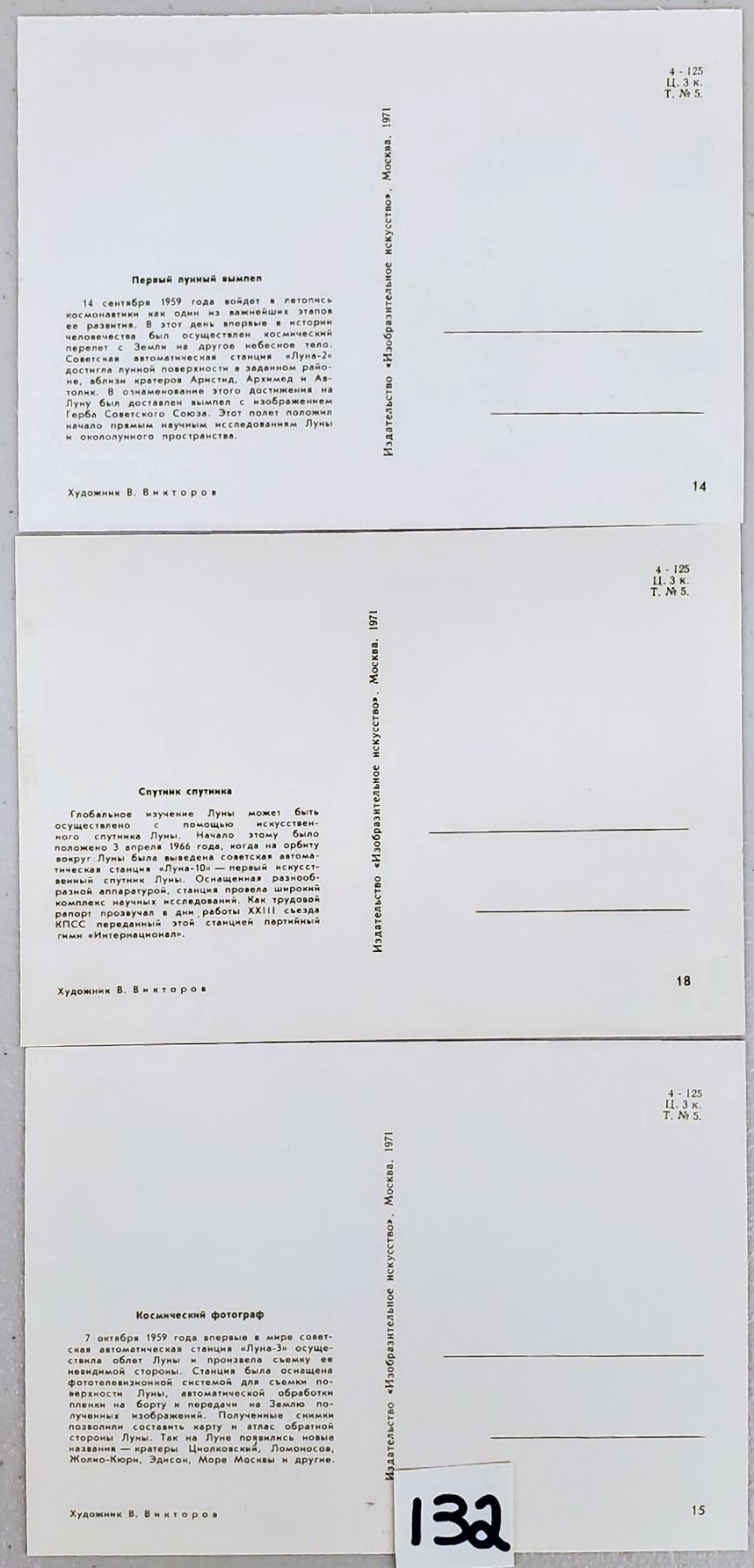 32 Russian Space postcards with envelope. Continental size, 1971.