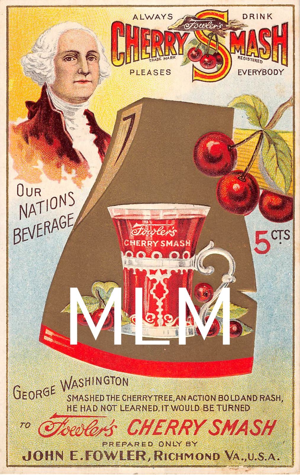 Fowler's Cherry Smash Soda Pop Soft Drink Advertising Richmond, Virginia Postcard