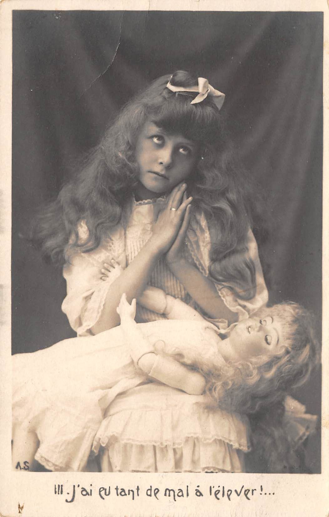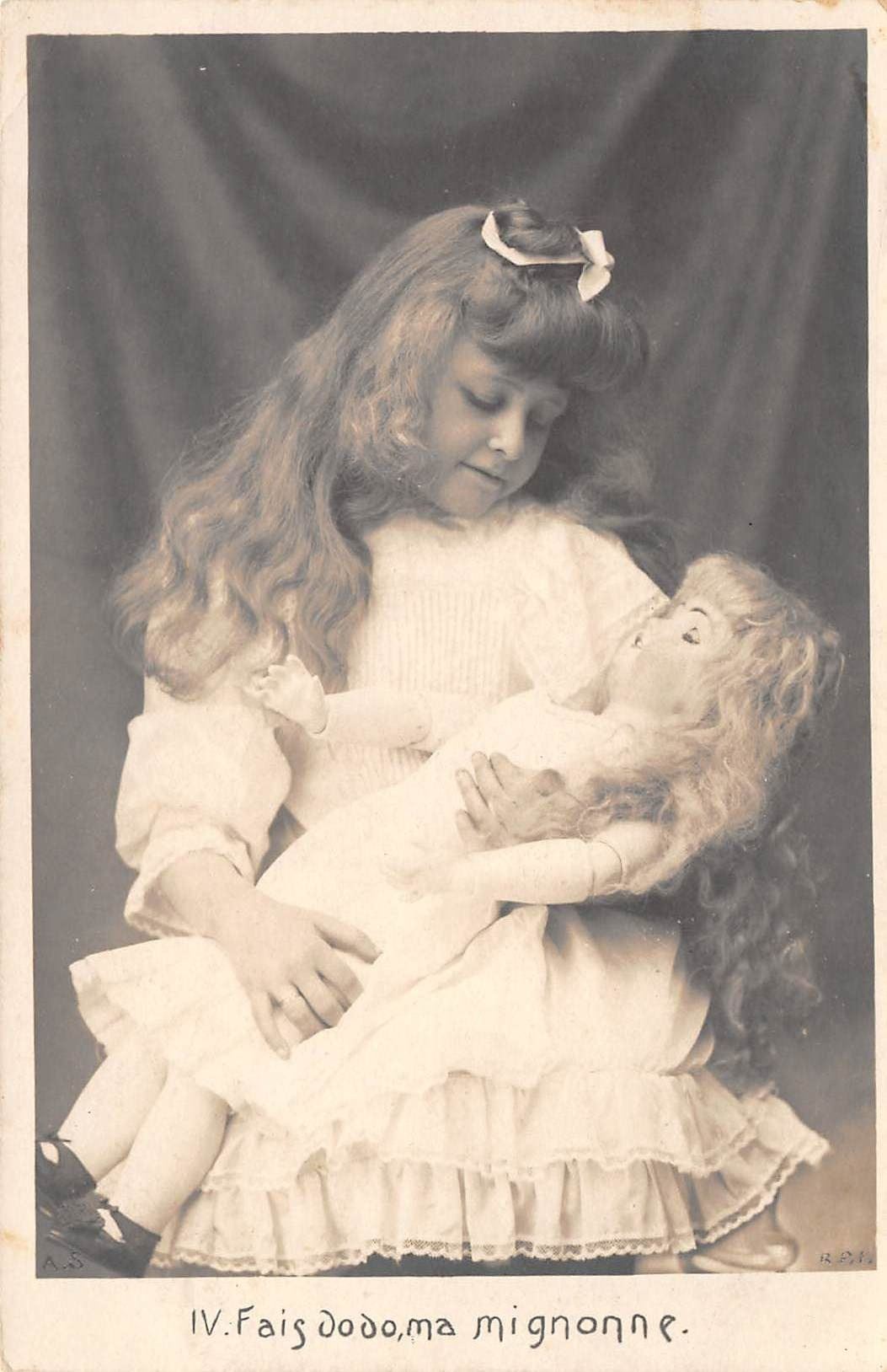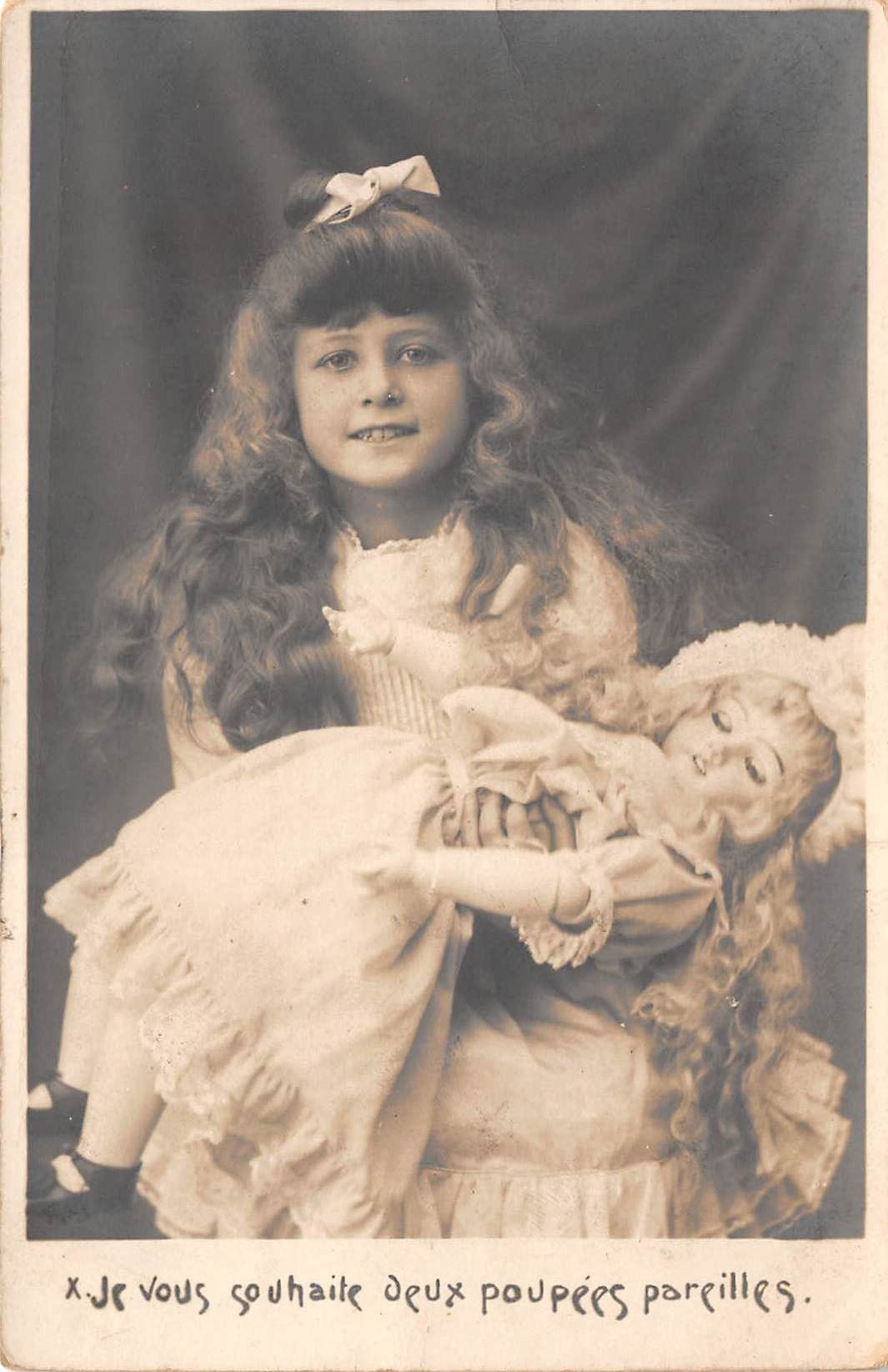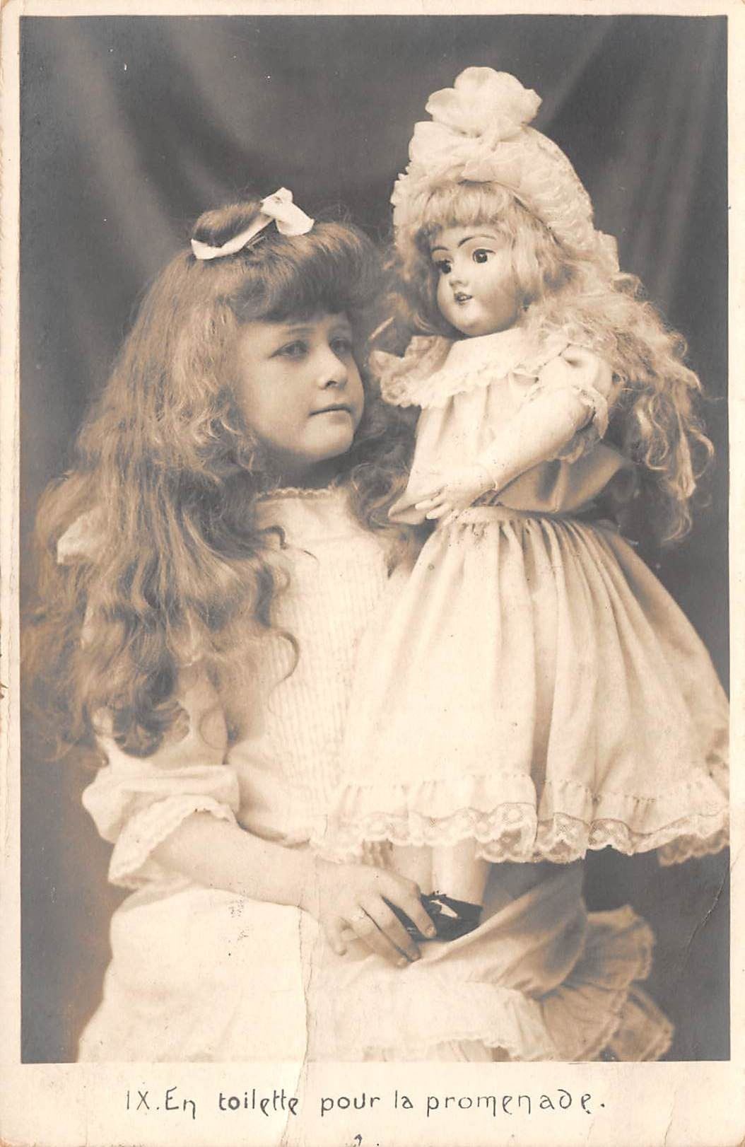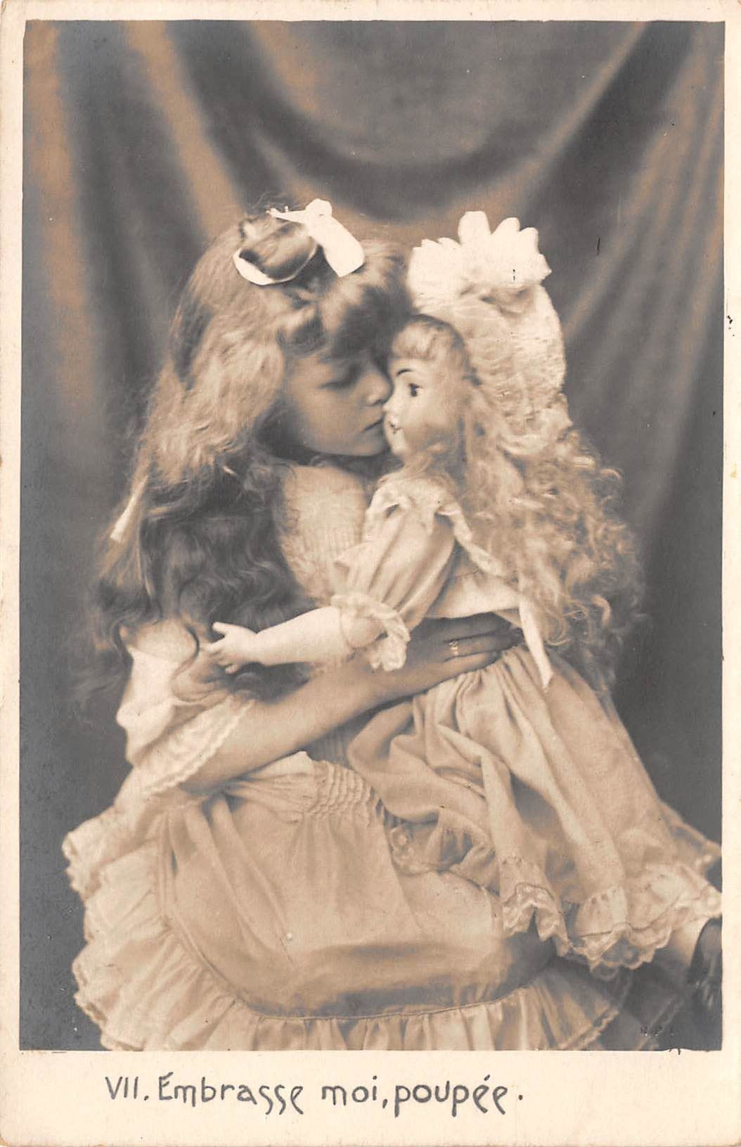 French Set of 10 Real Photo Postcards of a Girl & Her Doll