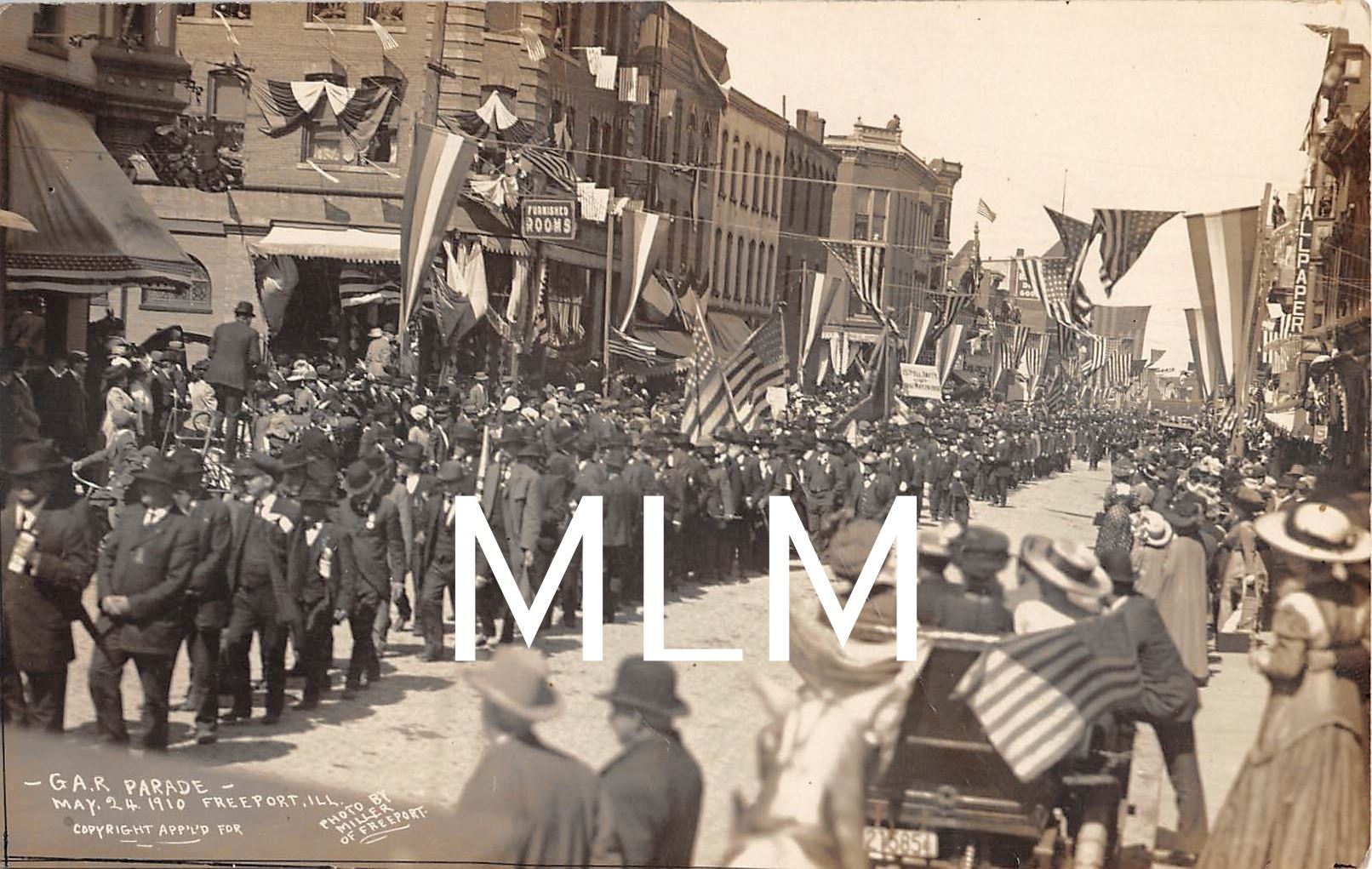 GAR Parade May 24 1910 Freeport, Illinois Photo Postcard