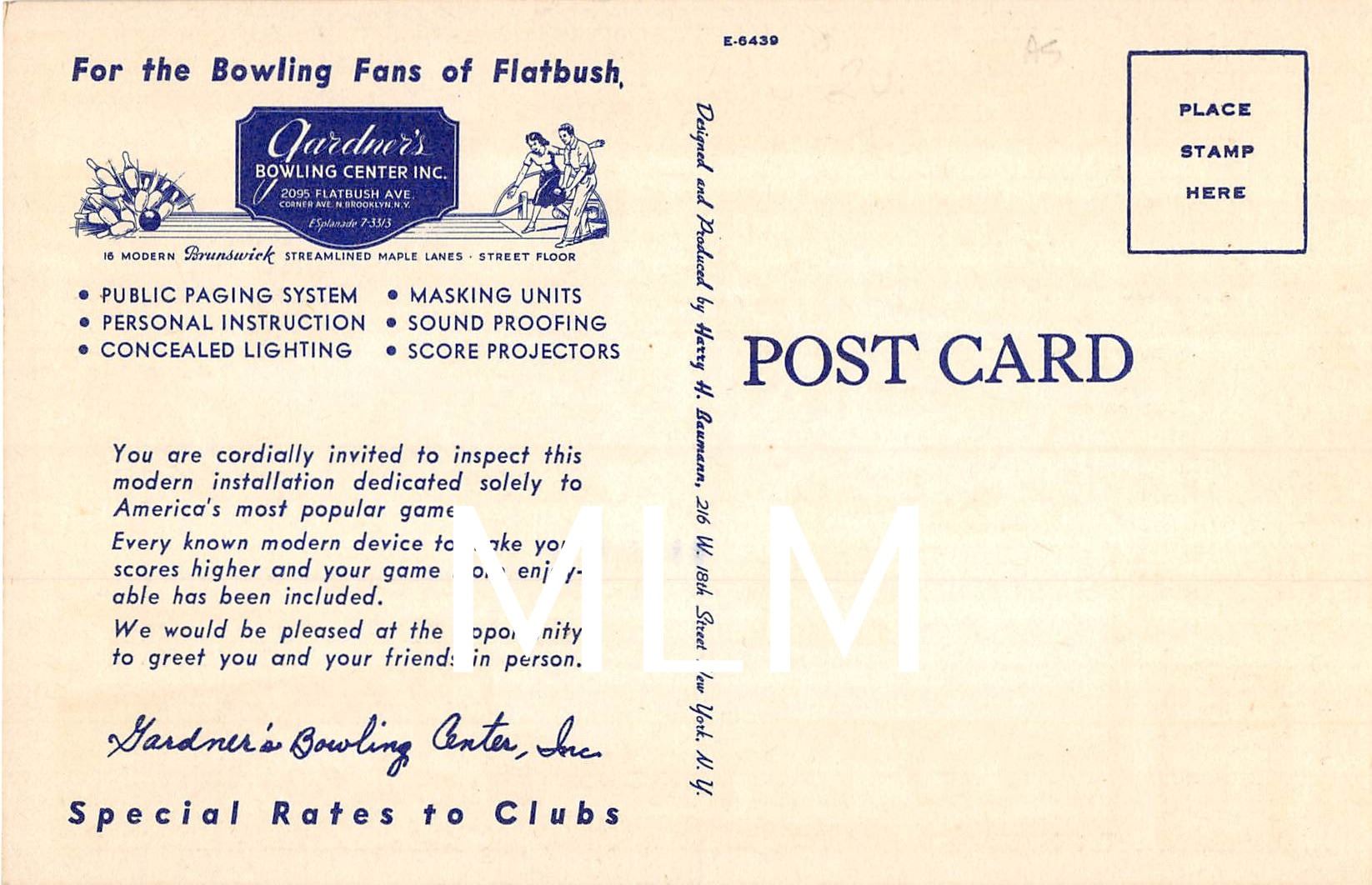 Gardner's Bowling Center Flatbush Brooklyn, New York Linen Postcard