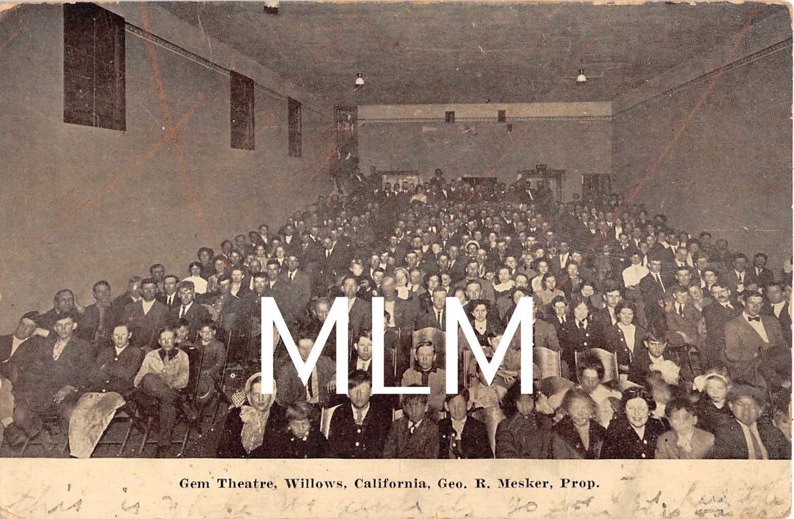 Gem Theatre Interior Geo. R. Mesker, Prop., Willows, California Postcard