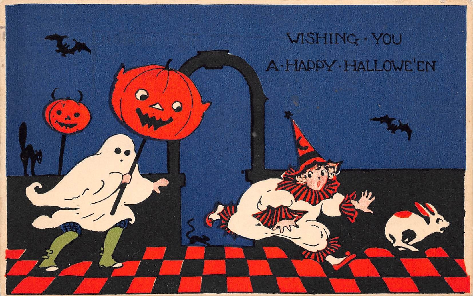 Gibson Halloween Child Chased By Ghost Holiday Greeting Postcard
