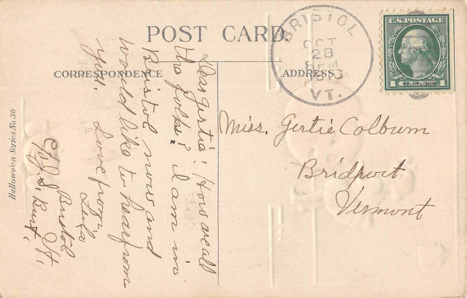 Girl With Jack-o-lantern Nash Halloween Postcard