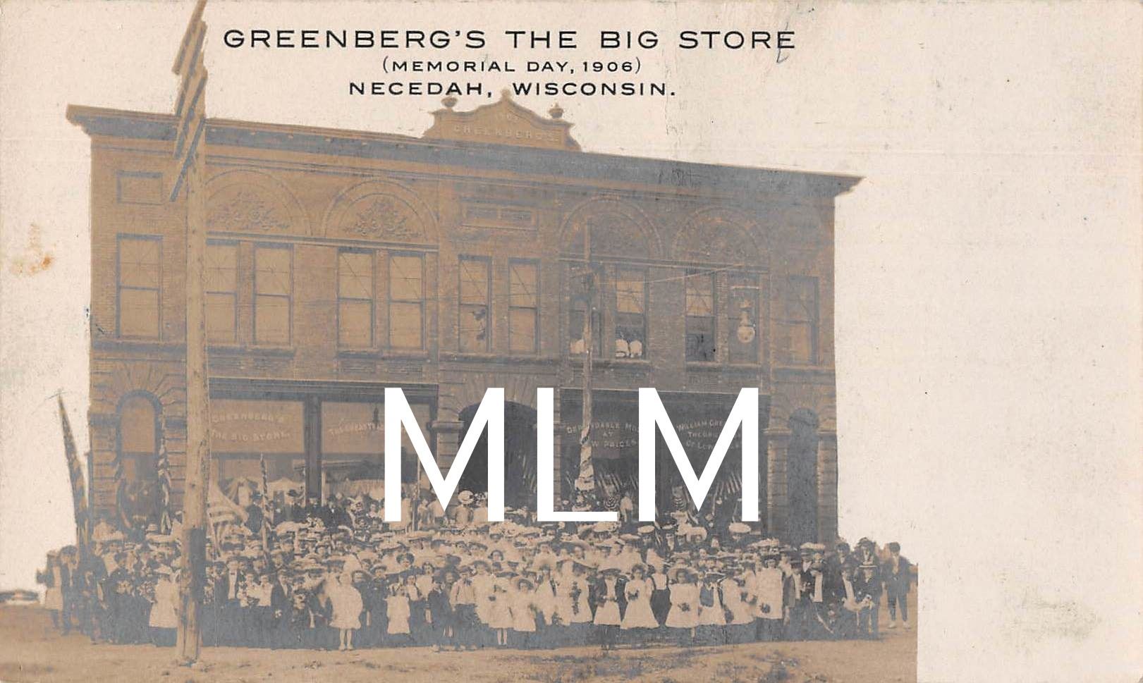 Greenberg's The Big Store Memorial Day 1906 People Gathered Necedah, Wisconsin Photo PC