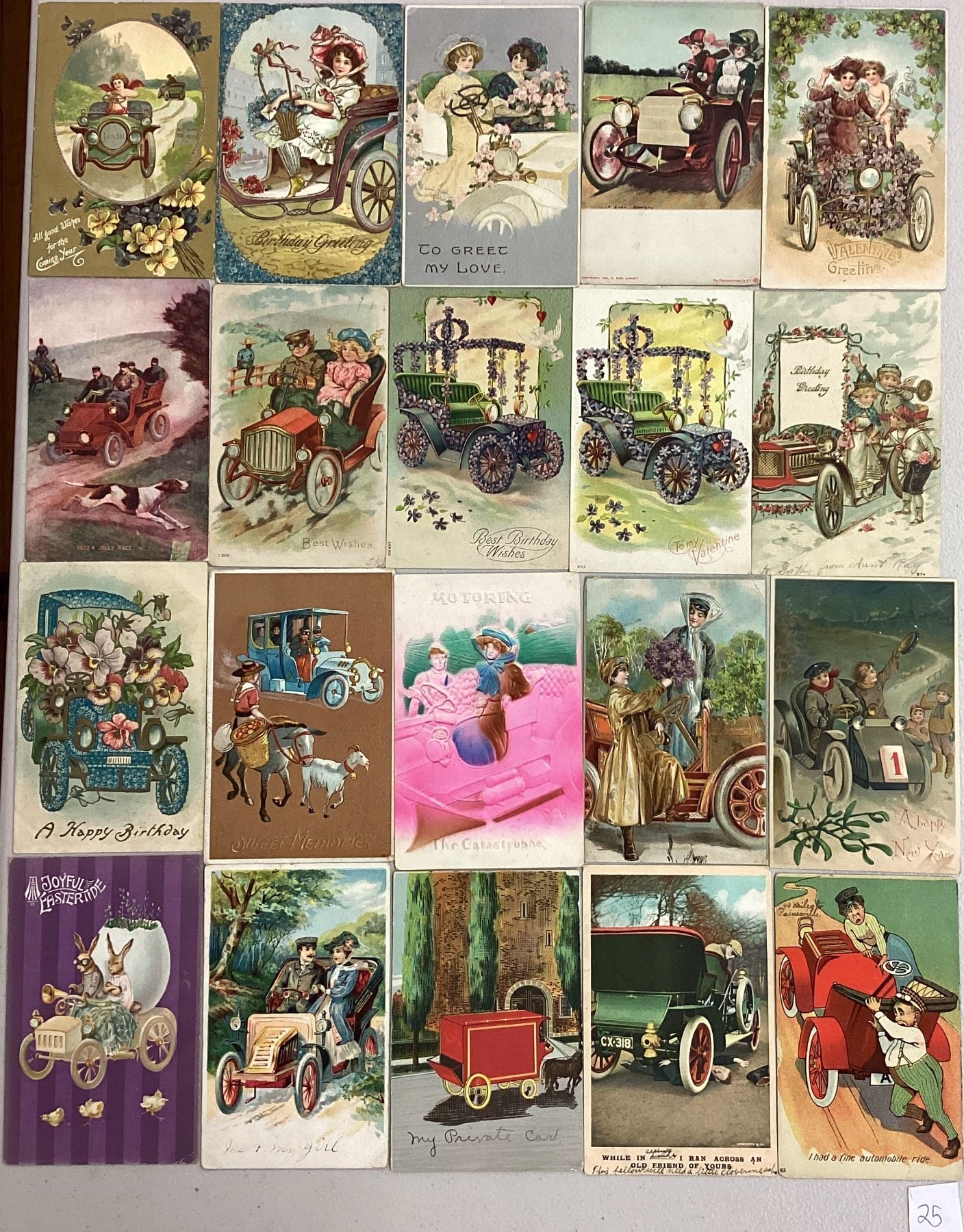 Over 40 greeting postcards with autos. Ladies, children, romance, holidays, etc.