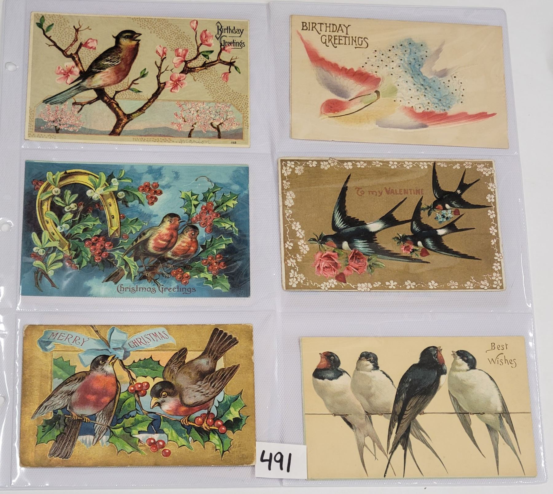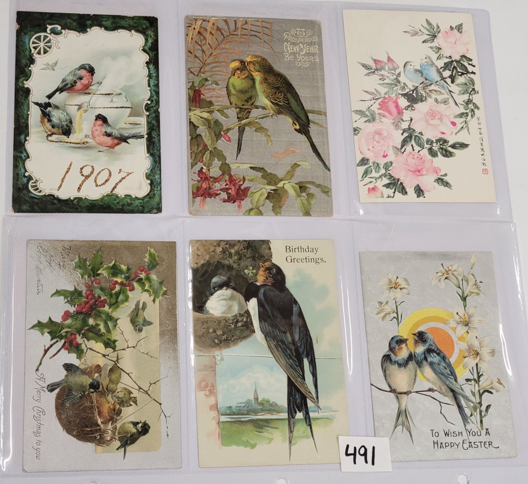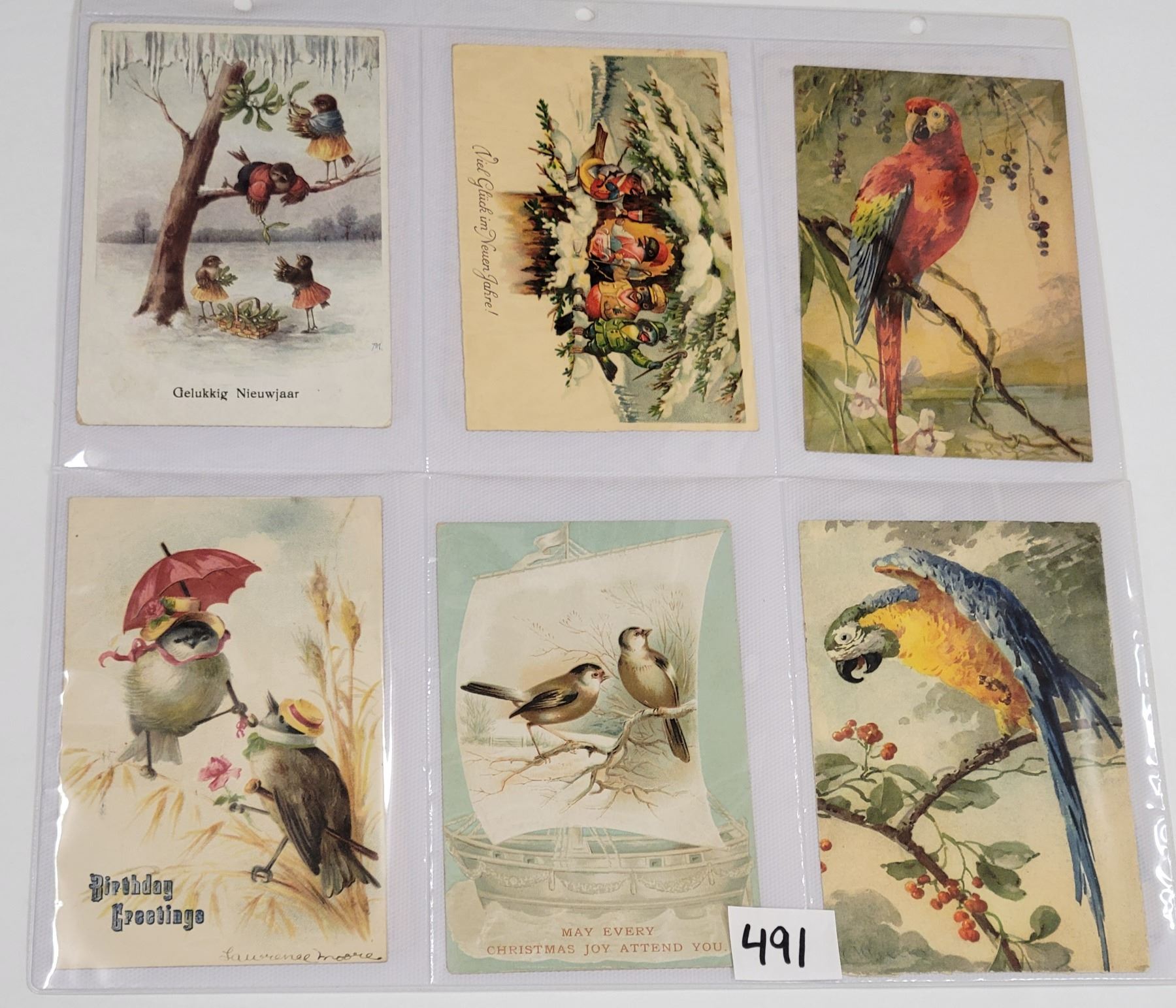 85 greeting postcards with birds. Holidays, dressed, Kleins, etc.