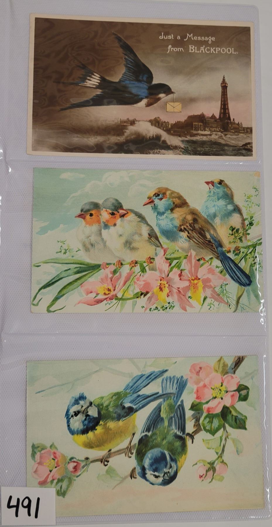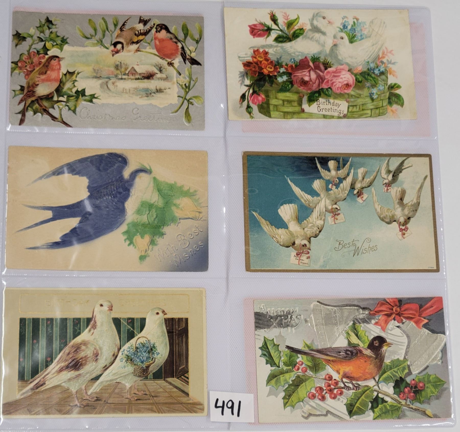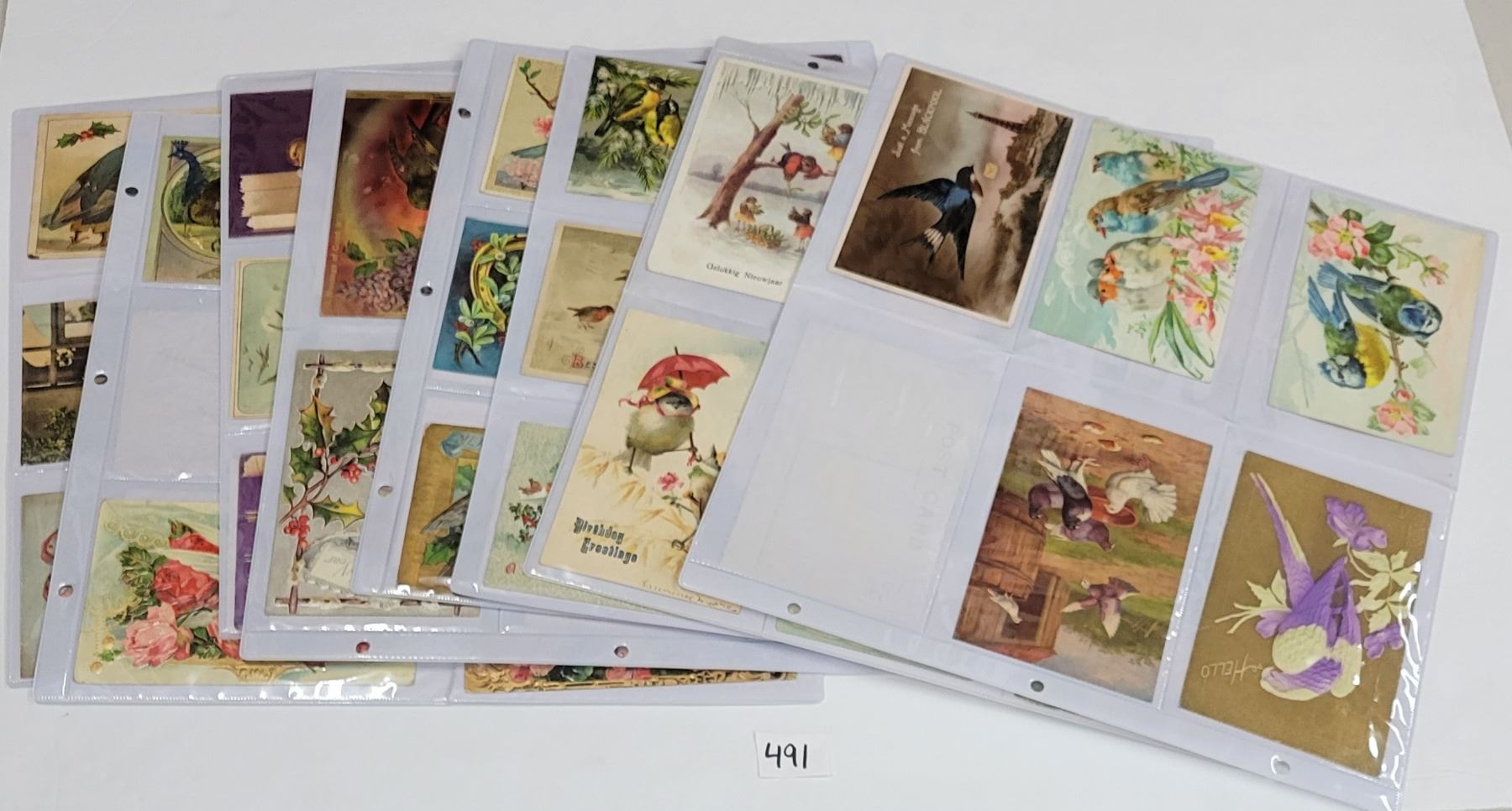 85 greeting postcards with birds. Holidays, dressed, Kleins, etc.