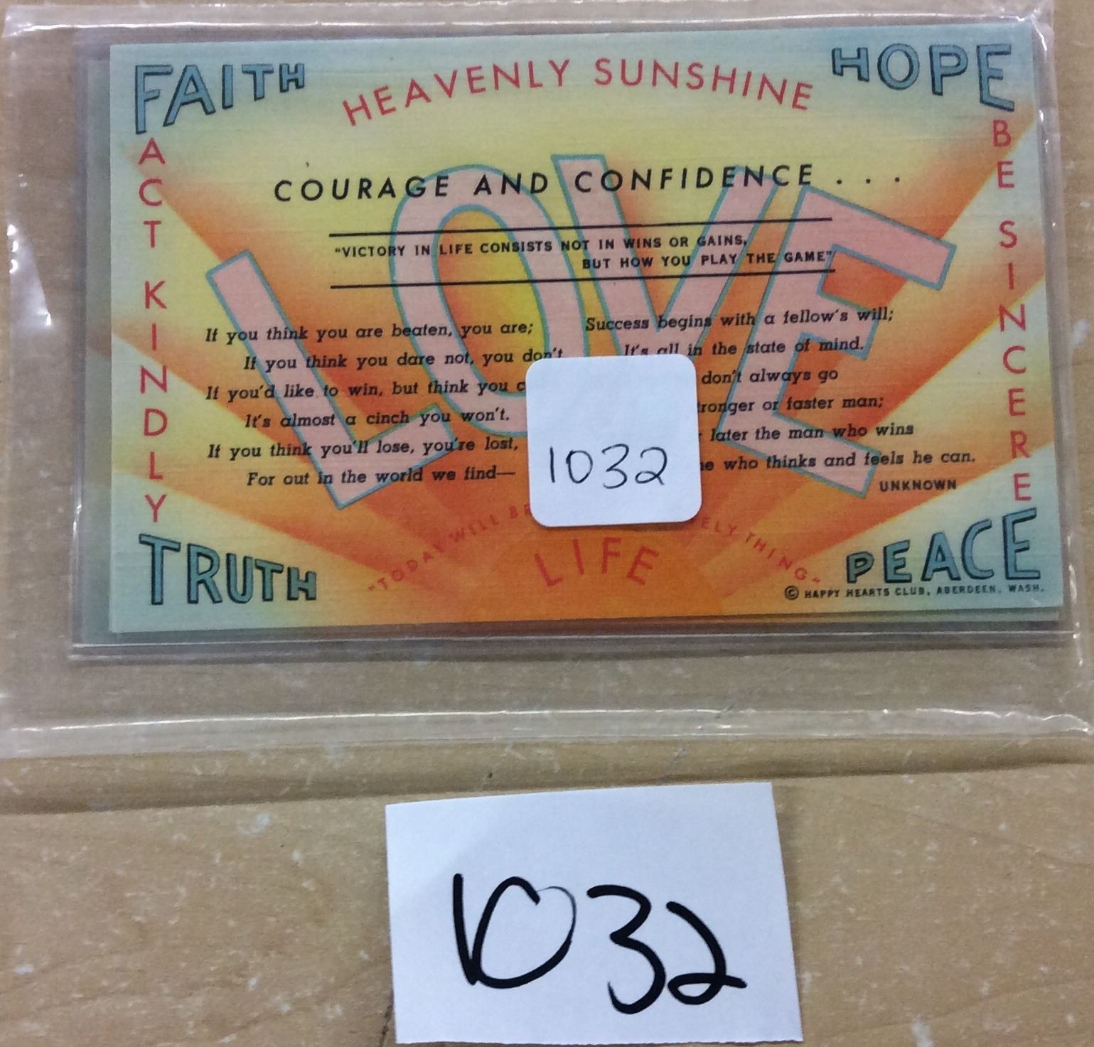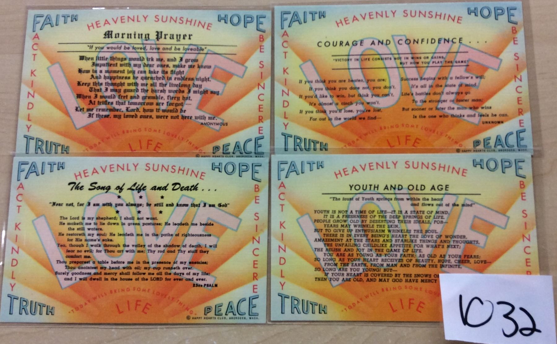 Group of 4 Faith, Hope, Peace & Truth by Happy Hearts Club Aberdeen, Washington Linen Postcards