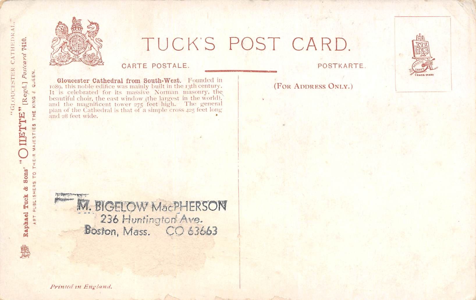 Group of 6 Tuck Oilette " Gloucester Cathedral" Postcards