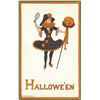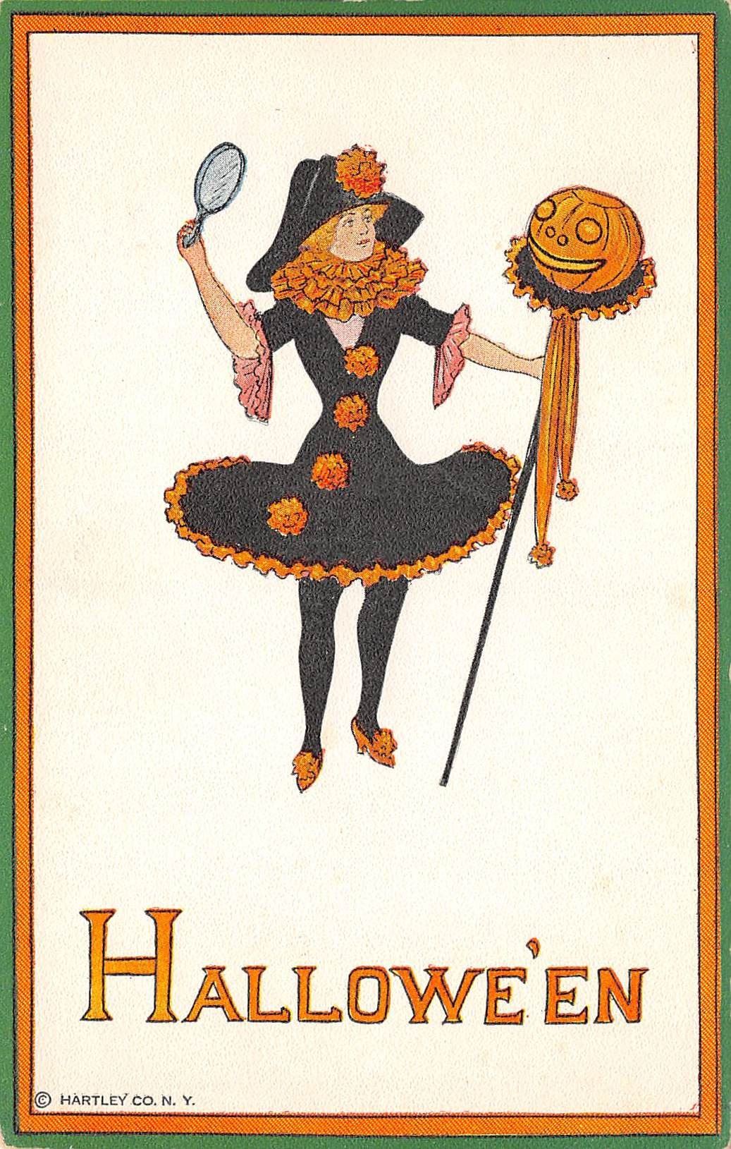 Halloween Costumed Lady & JOL Stick Holiday Greeting Postcard By Hartly