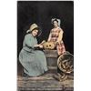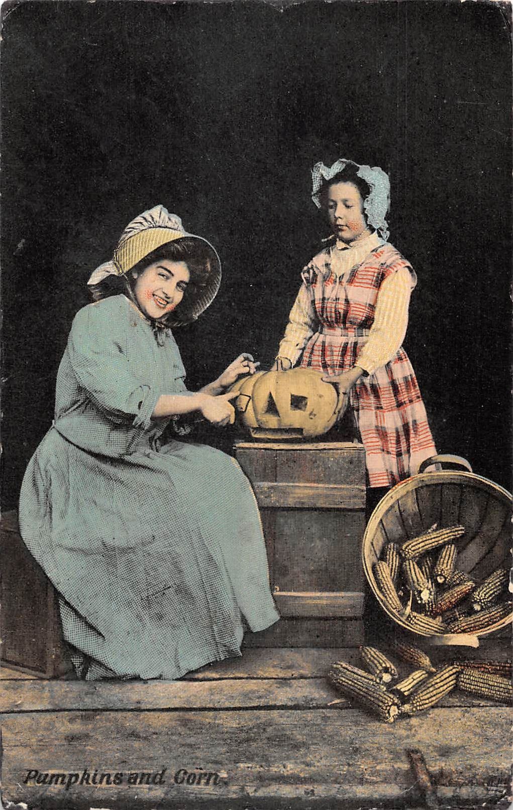 Halloween Girls Carving Pumpkin Holiday Postcard
