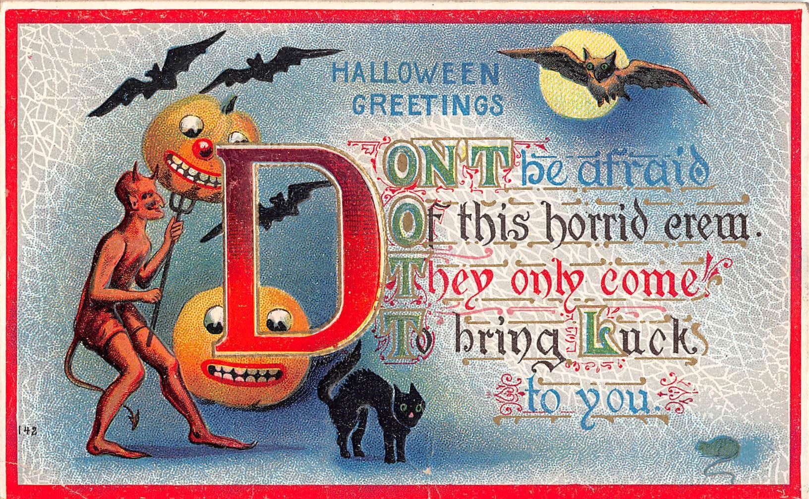 Halloween Greeting Cats, Bats, Pumpkin & Devil by Hir Postcard